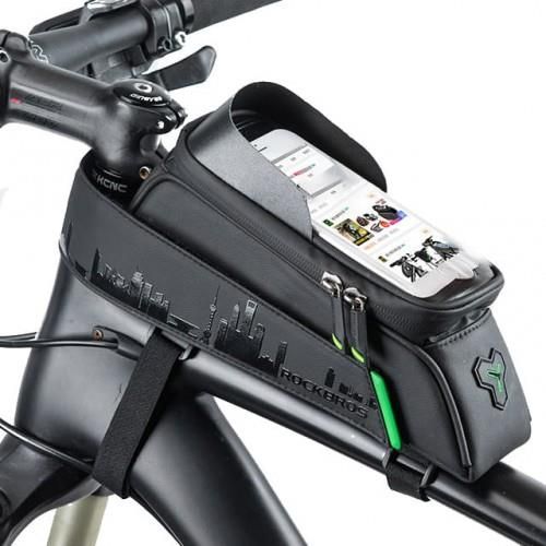 Sakwa rowerowa Rockbros 029-1BK na ramę, z pokrowcem na telefon - czarna Sakwa rowerowa Rockbros 029-1BK to idealny dodatek dla każdego rowerzysty. Została wykonana z wytrzymałego i wodoodpornego materiału. Posiada miejsce na smartfona o przekątnej do 6,5 cala. Pozwala na korzystanie z telefonu w trakcie jazdy. Regulowane pasy z zamknięciem na rzep sprawiają, że montaż jest niezwykle prosty. Najważniejsze zalety sakwy rowerowej Rockbros 029-1BK: Ułatwia korzystanie z telefonu w trakcie jazdy. Przejrzysty pokrowiec umożliwia łatwe korzystanie z nawigacji lub odbieranie połączeń. Jest odporna na deszcz i śnieg. Wytrzymały i wodoodporny materiał chroni zawartość przed wilgocią. Ma dużą pojemność. Komora na zamek błyskawiczny pomieści wszystkie niezbędne przedmioty. Montaż jest bajecznie łatwy. Paski z zamknięciem na rzep umożliwiają szybkie i stabilne przymocowanie do ramy. Posiada otwór na wejście mini jack. Wyjście na słuchawki pozwala na bezpieczne słuchanie muzyki podczas jazdy. Specyfikacja: Marka: Rockbros Model: 029-1BK Pojemność: 1,5 l Materiał: TPU Kolor: czarny Dostęp do telefonu Transparentny pokrowiec chroni Twój telefon przed deszczem. Umożliwia łatwe korzystanie z aplikacji czy odbieranie połączeń bez potrzeby wyjmowania smartfonu z sakwy. Wytrzymałość i wodoodporność Materiał, z którego wykonana jest sakwa zapewnia doskonałą ochronę przed deszczem i błotem. Zawartość sakwy zawsze będzie sucha i bezpieczna. Duża pojemność Jest na tyle pojemna, że z łatwością pomieści wszystkie niezbędne drobiazgi - kluczyki, rękawiczki czy portfel. Wszystkie przechowywane przedmioty są chronione przed uszkodzeniami.