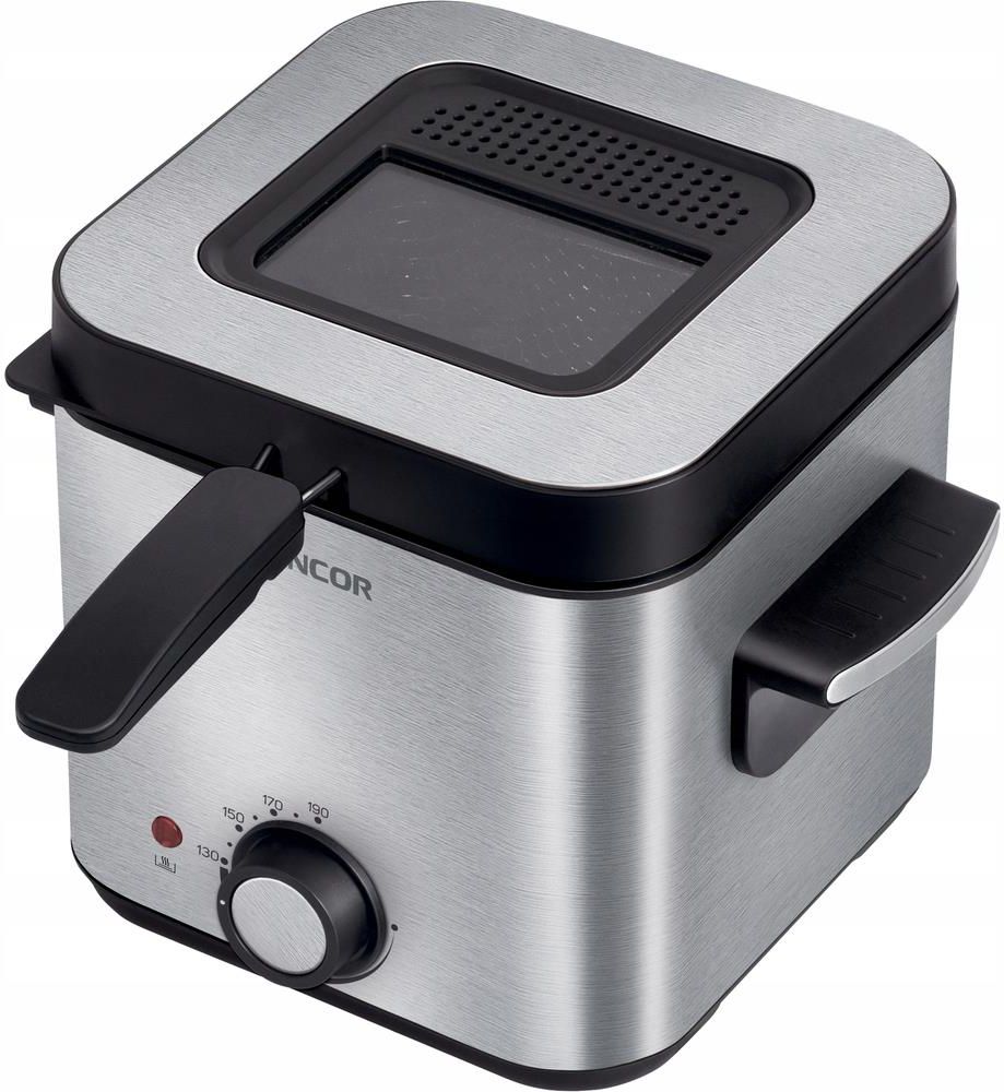 Frytkownica SFR 6200SS Objętość 1,5 l / 600 g frytek Pokrywa z wziernikiem do kontroli przyrządzania jedzenia Ustawiany termostat od 130 °C do 190 °C Pobór mocy 900 W GŁÓWNE CECHY Powierzchnia pojemnika wewnętrznego: nieprzywierająca powierzchnia Korpus ze stali nierdzewnej Zdejmowana pokrywa ze …