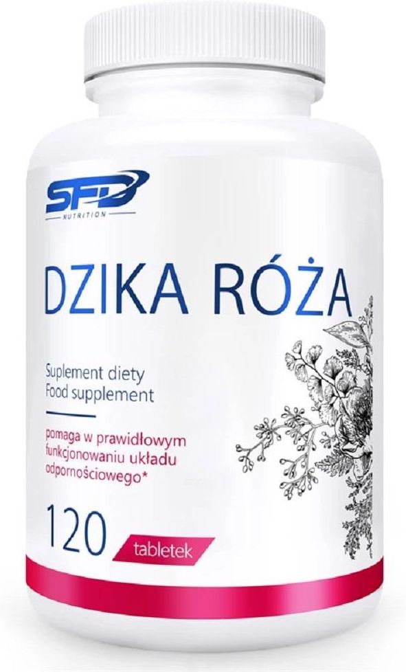SFD Dzika Róża – Naturalna Witamina C Dla Odporności I AntyoksydacjiSFD Dzika Róża to suplement diety zawierający naturalny ekstrakt z owoców dzikiej róży, będący bogatym źródłem witaminy C. Formuła wspiera odporność, chroni komórki przed stresem oksydacyjnym i wspomaga produkcję kolagenu – niezbędnego dla zdrowia kości, skóry i dziąseł.Dlaczego warto?Witamina C wspiera odporność i chroni komórki przed stresem oksydacyjnymNaturalne źródło – ekstrakt z dzikiej różyWystarcza na 60 dni suplementacj