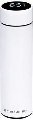 Termos LED GÖTZE & JENSEN KA110W Biały Materiał: Stal nierdzewna Rodzaj: Termos turystyczny Funkcje dodatkowe: Nienagrzewająca się obudowa, Wyświetlacz dotykowy LED Pojemność [ml]: 450 Indeks: 621018 Temperatura pod kontrolą Izolacja próżniowa Dzięki podwójnym ściankom izolowanym próżniowo termos GÖTZE & JENSEN KA110 o pojemności 450 ml doskonale utrzymuje temperaturę napojów ciepłych do 12h i zimnych aż do 24h, więc świetnie sprawdza się o każdej porze roku. Termos został wykonany z wysokiej jakości stali nierdzewnej, która nie wpływa na smak przechowywanych napojów. Dotykowy wyświetlacz Termos GÖTZE & JENSEN KA110 to nowoczesne akcesorium wyposażone w nakrętkę z dotykowym wyświetlaczem LCD, który pozwala w każdej chwili sprawdzić temperaturę napoju. Dzięki temu wiesz, czy napój będzie jeszcze parzył, czy będzie tylko przyjemnie ciepły. Kolor: Biały Materiał: Stal nierdzewna Pompka: Nie Rodzaj: Termos turystyczny Funkcje dodatkowe: Nienagrzewająca się obudowa, Wyświetlacz dotykowy LED Możliwość mycia w zmywarce: Nie Pojemność [ml]: 450