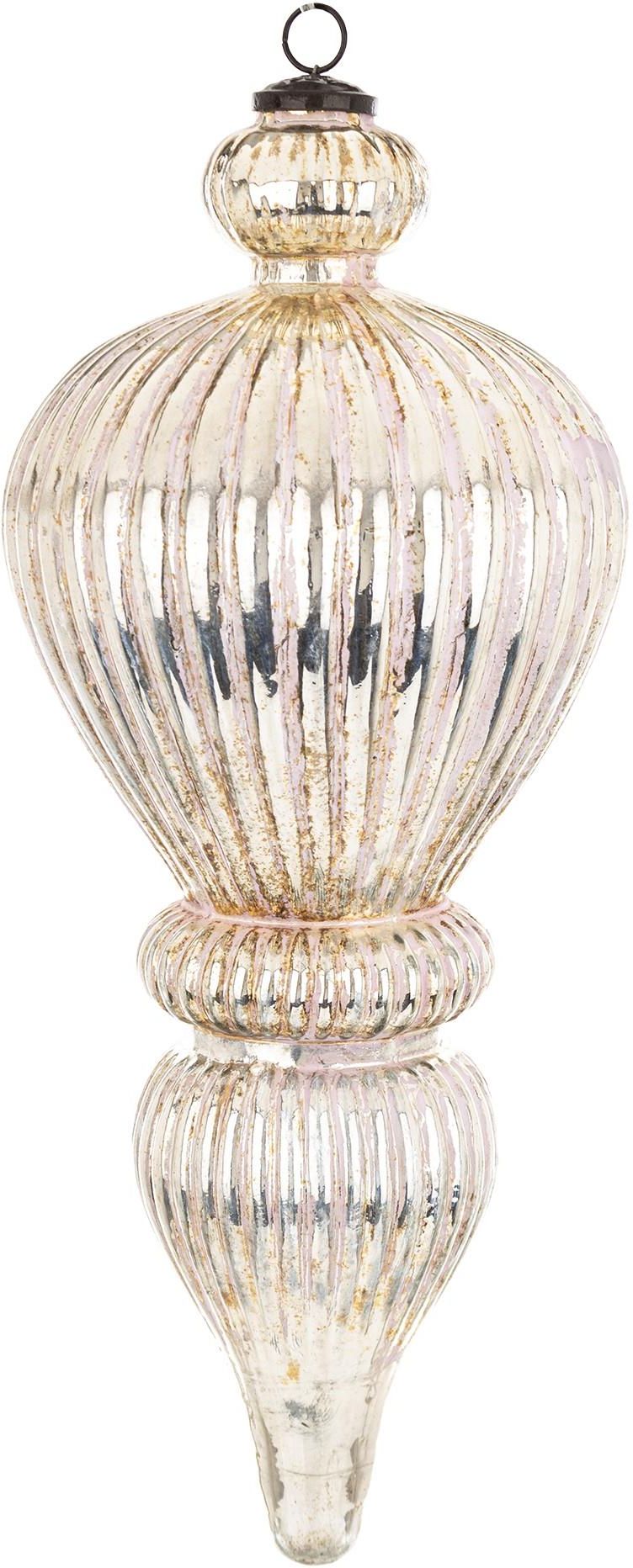 Bombka Bombki to wyjątkowe dekoracje świąteczne.To świat nieprzebranych możliwości i pomysłów dekoracyjnych. Bez nich nie sposób wyobrazić sobie choinki Bożonarodzeniowej. Bombki pięknie wyglądają w świetle lampek choinkowych. Zostały zaprojektowane, aby sprawić by Twoje wnętrze wyglądało niezwykle świątecznie.Bombki mają różne kształty i kolory. Bardzo ciekawe efekty dekoracyjne można osiągnąć, łącząc je ze sobą. Cechy produktu Dekoracja świąteczna o znakomitym designie Subtelna dekoracja o wielu możliwościach aranżacyjnych Podstawowe dane Kolor: różowy, złoty Material: szkło Rozmiar :51,5x21x21 cm Galeria produktu