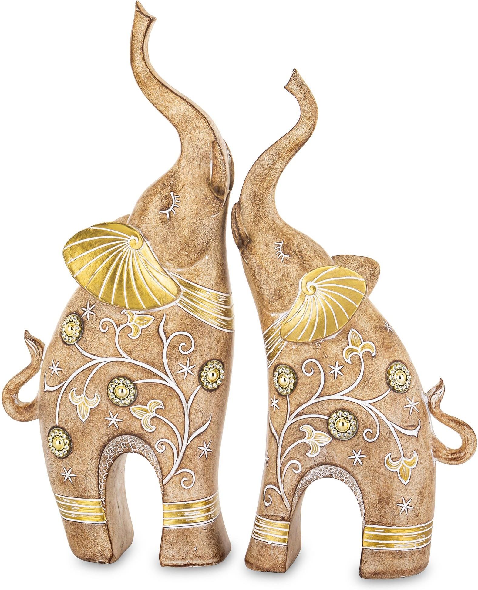 Figurka Słonie Figurki / Figurki Avila Rozmiar: 32x13,5x8 28x13,5x7 Pakowanie: 8/1 Waga: 0.01 kg Materiał: tworzywo sztuczne Kolor: brązowy, złoty