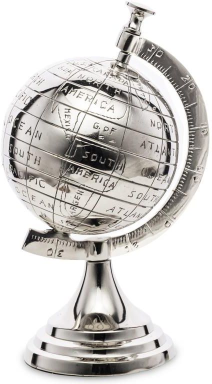 Globus. Rozmiar: 26,5x12,5x11,5. Kolor: srebrny. Materiał: metal. Waga: 0.7kg. Wyrób rzemiosła artystycznego. Doskonały wybór dla osób chcących się wyróżnić i być pozytywnie odebranym. Doskonałe materiały nadają niepowtarzalności dla tego pięknego produkt