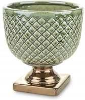 Osłonka / doniczka / wazon ceramiczny glamour | Jasnozielono-złoty puchar dekoracyjny | 18 cm | Kamionka Elegancka ceramiczna osłonka w kolorze jasnozielonym ze złotym wykończeniem to doskonały wybór dla miłośników stylu glamour i nowoczesnej klasyki. Jej subtelny odcień zieleni w połączeniu z …