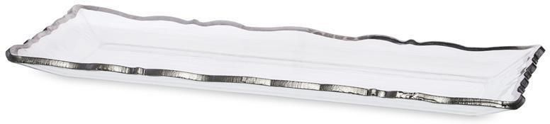 Patera glamour 128369 Zachwycająca szklana patera w efektownym stylu glamour. Zresztą funkcji może pełnić wiele w zależności od potrzeb czy pomysłowości gospodyni domu. Może być tacką pod piękne świece, podstawkiem pod stroik świąteczny, talerzykiem na ciastka. Idealnie nadaje się również jako prezent Wymiary patery: 3,5 x 52 x 19cm waga: około 1,80 kg