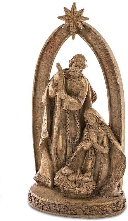 Figurka Świętej Rodziny z Gwiazdą Betlejemską – Klasyczna Dekoracja Bożonarodzeniowa Wprowadź do swojego domu niepowtarzalny klimat świąt Bożego Narodzenia z tą piękną figurką Świętej Rodziny. Wykonana z trwałego tworzywa sztucznego, utrzymana w ciepłej, brązowej kolorystyce, stanowi wyjątkowy element dekoracyjny, który doskonale dopełni każdą świąteczną aranżację. Figurka o wymiarach 35x18x13 cm, przedstawia Świętą Rodzinę w prostym, lecz eleganckim stylu, z Gwiazdą Betlejemską nad nimi, co dodaje jej duchowego i symbolicznego wymiaru. Parametry: Wymiary: 35x18x13 cm – idealny rozmiar do postawienia na komodzie, półce czy pod choinką. Materiał: Tworzywo sztuczne – lekkie, ale solidne i trwałe, co gwarantuje długowieczność produktu. Kolor: Brązowy – elegancki, klasyczny odcień, który pasuje do każdego wnętrza Zalety: Klasyczna Elegancja: Dzięki subtelnym zdobieniom i stonowanej brązowej kolorystyce, figurka wprowadza do wnętrza ciepło i tradycyjny świąteczny nastrój. Trwałość: Wykonana z wysokiej jakości tworzywa sztucznego, jest odporna na uszkodzenia, co czyni ją doskonałą dekoracją na wiele lat. Symbolika: Przedstawienie Świętej Rodziny pod Gwiazdą Betlejemską nadaje tej dekoracji głęboki, religijny charakter, przypominając o prawdziwym znaczeniu świąt. Uniwersalność: Pasuje zarówno do klasycznych, jak i nowoczesnych aranżacji wnętrz, doskonale komponując się z innymi dekoracjami bożonarodzeniowymi. Lekka Konstrukcja: Dzięki lekkiemu materiałowi, figurkę można łatwo przenosić i ustawiać w dowolnym miejscu bez obawy o jej ciężar. Figurka Świętej Rodziny z Gwiazdą Betlejemską to doskonały wybór dla osób ceniących sobie klasyczne, religijne dekoracje bożonarodzeniowe. Idealna zarówno jako centralny element świątecznego wystroju, jak i subtelna ozdoba, która wprowadzi ciepło i magię świąt do Twojego domu.