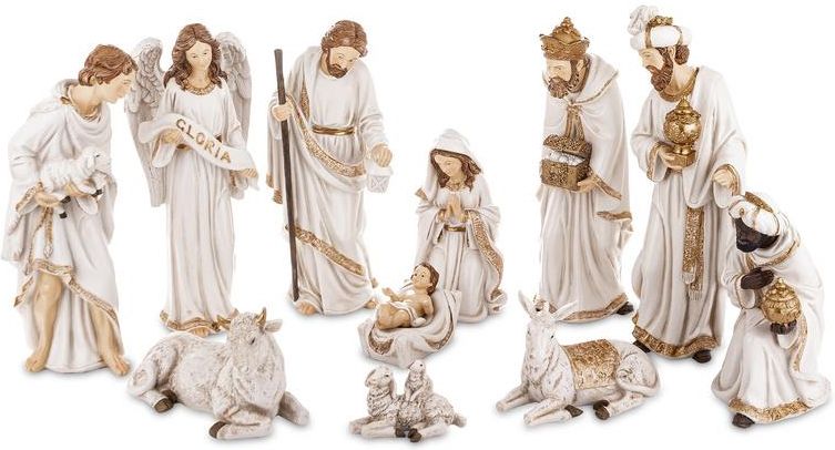 Szopka Bożonarodzeniowa. Materiał: tworzywo sztuczne. Rozmiar: całość: 32x70x40. Kolor: beżowy. Religijne figurki bożonarodzeniowe nawiązujące do trad...
