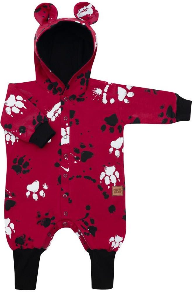Pomysłowy bawełniany pajacyk niemowlęcy New Baby Paw. Pajacyk w całości zadrukowany zabawnym wzorem. Wykonany jest z wysokiej jakości materiału bawełnianego z dodatkiem elastanu oraz z bawełnianej podszewki. Materiał jest gładki i przyjemny w dotyku. Praktyczne zapinanie na napy na całej długości znacznie ułatwia ubieranie i przewijanie. Pajac posiada praktyczny kaptur z uszkami oraz szersze elastyczne obszycia na rękawach i nogawkach, a cała wewnętrzna strona podszyta jest ciepłą bawełnianą podszewką, która zwiększa komfort noszenia. W kombinezonie dziecko poczuje się niezwykle wygodnie i komfortowo. Skład: 95% bawełna, 5% elastan, podszewka - 95% bawełna, 5% elastan. Idealny na jesień i wiosnę. Rozmiar: 56 (0-3m)