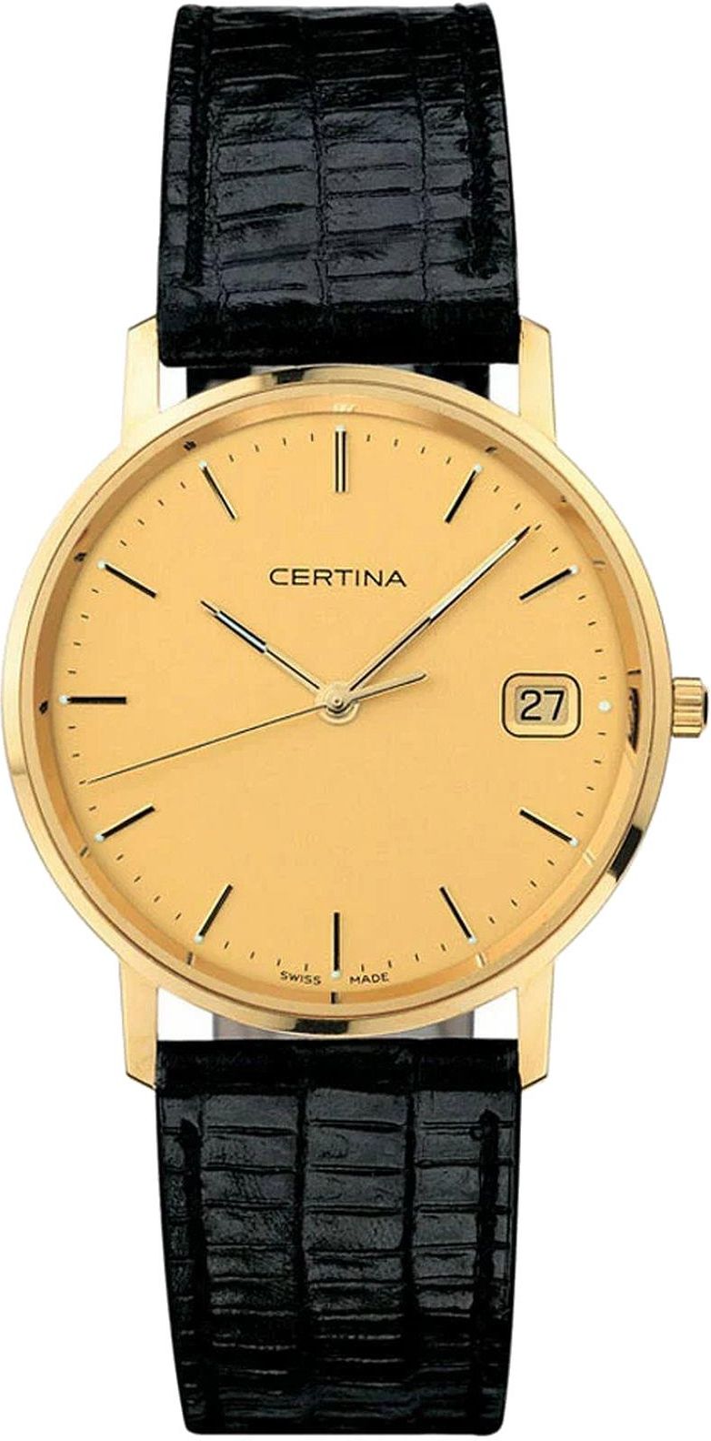 Certina C158.9289.68.31 Zegarki to nie tylko akcesoria do odmierzania czasu, ale również wyraz osobistego stylu i elegancji. Certina C158.9289.68.31 to wyjątkowy model, który łączy elegancję z nowoczesnymi rozwiązaniami. Oprócz precyzyjnego wskazywania godziny, ten zegarek staje się doskonałym dopełnieniem każdej stylizacji, a jego kluczowe cechy sprawiają, że jest idealnym wyborem dla mężczyzn ceniących sobie styl i jakość. Typ zegarka Ten model to zegarek analogowy, co oznacza, że wskazówki na tarczy wskazują czas w tradycyjny sposób. Analogowe zegarki cieszą się dużą popularnością ze względu na swoją elegancję i ponadczasowy styl. W porównaniu do zegarków cyfrowych, które wyświetlają czas w formie liczbowej, modele analogowe oferują estetyczne oraz klasyczne podejście do pomiaru czasu. Mechanizm Certina C158.9289.68.31 zasilany jest mechanizmem kwarcowym, co zapewnia wysoką precyzję pomiaru czasu. Kwarcowe mechanizmy działają na zasadzie drgań syntetycznego kryształu kwarcu, co pozwala na dokładne odmierzanie czasu z minimalnym błędem, wynoszącym zaledwie +/- 10 sekund w ciągu 30 dni. Długotrwała żywotność baterii oraz niskie koszty utrzymania to dodatkowe atuty tego rozwiązania, czyniąc go idealnym wyborem dla osób poszukujących niezawodności. Materiał koperty Koperta zegarka wykonana jest z 14-karatowego złota, co nadaje jej wyjątkowy blask oraz elegancję. Złoto to materiał, który nie tylko prezentuje się luksusowo, ale także jest bardzo trwały, co oznacza, że zegarek będzie zachowywał swoją estetykę przez długi czas. Klasyczny okrągły kształt koperty podkreśla ponadczasowy charakter tego modelu. Szkiełko Zastosowano szkło szafirowe, znane ze swojej niezwykłej twardości oraz odporności na zarysowania. Osiągające stopień 9 w skali Mohsa, szafirowe szkło zapewnia optymalną ochronę tarczy zegarka, a jego doskonałe właściwości optyczne gwarantują klarowny widok na czas. Dzięki tym zaletom, zegarek będzie idealnym towarzyszem w codziennym użytkowaniu. Pasek lub bransoleta Zegarek jest wyposażony w pasek wykonany z wysokiej jakości skóry naturalnej w kolorze czarnym. Skórzane paski charakteryzują się elegancją oraz wygodą, co czyni je odpowiednimi do formalnych okazji i codziennego noszenia. Tradycyjna stalowa sprzączka zapewnia solidne zapięcie, a szerokość paska wynosząca 18 mm sprawia, że model dobrze układa się na nadgarstku. Styl i design To zegarek, który idealnie wpisuje się w styl klasyczny. Zgaszona złota tarcza w połączeniu ze złotymi wskazówkami nadaje mu eleganckiego charakteru, sprawiając, że będzie doskonałym wyborem na specjalne okazje, jak i na co dzień. Uniwersalny design sprawia, że zegarek pasuje do wielu stylizacji, zarówno formalnych, jak i casualowych. Wodoszczelność Wodoszczelność zegarka wynosząca 30 metrów (3 ATM) zapewnia ochronę przed zachlapaniami, więc można go nosić w codziennych sytuacjach, takich jak mycie rąk. Należy jednak pamiętać, aby unikać pływania czy nurkowania w tym modelu. Kluczowe cechy zegarka Poniżej przedstawiamy najważniejsze właściwości, które wyróżniają ten model: Wodoszczelność: 30 metrów (3 ATM), Materiał koperty: 14-karatowe złoto, Mechanizm: kwarcowy, Pasek: skóra naturalna, Szkło: szafirowe, Styl: klasyczny, Typ: analogowy. Wymiary zegarka Zegarek charakteryzuje się starannie dobranymi wymiarami, które zapewniają komfort użytkowania. Okrągła koperta o odpowiednich proporcjach sprawia, że model idealnie układa się na nadgarstku, a jego klasyczny design sprawia, że jest odpowiedni dla każdego mężczyzny.