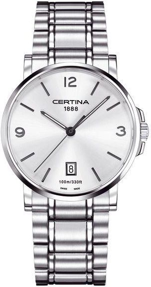 Zegarek męski na bransolecie Certina Ds Caimano wyposażony jest w kwarcowy mechanizm, zasilany za pomocą baterii. Posiada bardzo wysoką dokładność mierzenia czasu +/- 10 sekund w przeciągu 30 dni. Kwarcowy ze wskaźnikiem wyczerpania baterii (EOL): W takim mechanizmie zastosowano wskaźnik wyczerpania baterii (EOL – ang. end of life). Gdy wskazówka sekundnika zaczyna przeskakiwać co cztery sekundy, oznacza to, ze bateria zegarka powinna być wymieniona w przeciągu najbliższych dwóch tygodni. KOPERTA: Mechanizm szwajcarski mieści się w stalowej, wytrzymałej kopercie. SZKŁO: Zegarek wyposażony w szkło szafirowe, które oprócz niezwykłej twardości (stopień 9 w skali Mohsa) charakteryzuje się także odpornością na skrajne różnice temperaturowe i działanie rozpuszczalników. Oprócz tych zalet ma najlepsze właściwości optyczne. Szkło z wysokiej jakości tlenku aluminium. TARCZA Okrągła koperta z tarczą w nieskazitelnym kolorze srebrnym emanuje męskością. Subtelna elegancja pięknie uwidacznia się na klasycznych wskazówkach w kolorze czarnym. DATOWNIK: Wygodny datownik umieszczony na tarczy ukazuje w formie popularnego okienka aktualny dzień miesiąca. WODOSZCZELNOŚĆ: do 100m (10 bar / 330 stóp). Bardzo duża wodoszczelność - na poziomie 100m (10ATM) oznacza, że zegarek bez obaw może być zanurzany w wodzie np. podczas kąpieli czy pływania. Właściciel tego zegarka może również pozwolić sobie na nurkowanie bez akwalungu. Double Securite DS: Dodatkowo zegarek wyposażony w system DS, czyli podwójne zabezpieczenie. Posiada bardzo wysoką odporność na wstrząsy, niezwykłe wytrzymałe szafirowe szkiełko, uszczelkę przy koronce oraz uszczelka przy wałku naciągowym, zapewniające szczelność zegarka nawet w sytuacji, gdy koronka znajduje się w położeniu wyciągniętym oraz wzmocnione dno koperty. BRANSOLETA: Wykorzystanie wysokiej jakości stali w bransolecie gwarantuje, że zegarek odporny jest na korozję i uszkodzenia oraz nie powoduje alergii. Stop stali szlachetnej charakteryzuje się optymalna odpornością na korozje. W zegarkach CERTINA wykorzystany jest jeden z najlepszych stopów stali 316. ZAPIĘCIE: Standardowe zamknięcie na podwójny zatrzask gwarantuje posiadaczowi tego zegarka, że nie zsunie mu się z ręki nawet w momencie niechcącego otwarcia. Natomiast zamknięcie bransolety odbywa się przez zatrzaśnięcie. NAJPIĘKNIEJSZY PREZENT TO JEST CZAS! Ds. Caimano to seria, to zegarki damskie i męskie, które zostały wyposażone są w wysokiej jakości mechanizmy automatyczne, lub kwarcowe. Są to zegarki bardzo eleganckie, proste i typowo wizytowe. Nie posiadają rozbudowanych funkcji- jedynie datę i czas. Zegarki z tej linii posiadają system DS, który sprawia, że zegarek jest odporny na czynniki zewnętrzne tj. wstrząsy. Firma Certina jest producentem zegarków, które charakteryzują się elegancją, prestiżem, oraz sportowym designem. Precyzja wykonania, oraz wykorzystanie materiałów najwyższej jakości sprawiają, że zegarki Certina cieszą się uznaniem o ogromnym powodzeniem na całym świecie. Wieloletnia tradycja, oraz nieustanny rozwój tej szwajcarskiej firmy, to główne elementy składające się na sukces marki. Nasz sklep internetowy z zegarkami Certina jest autoryzowanym dystrybutorem marki. Wszystkie damskie i męskie zegarki Certina zakupione w naszym sklepie posiadają 2 letnią gwarancję i zapakowane są w oryginalne opakowanie.