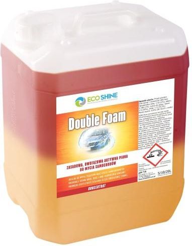 DOUBLE FOAM - Dwufazowa aktywna piana do mycia pojazdów i części. KONCENTRAT 5L. Użytkownicy twierdzą że skuteczniejsza niż DIMER Zasadowa, dwufazowa aktywna piana do mycia samochodów i części samochodowych. Właściwości: Idealna do mycia pojazdów oraz części samochodowych. Doskonale usuwa brud, kurz i inne zabrudzenia drogowe. Podwójna skuteczność działania dzięki dwufazowej formie. Paragon fiskalny znajduje się w przylgni pod listem przewozowym (etykietą) lub w środku opakowania. Faktury w formacie PDF podpinane są pod allegro, jeżeli chcesz aby faktura papierowa była dołączona do przesyłki - poinformuj nas o tym w uwagach. Sposób użycia i dozowania: Przed użyciem wstrząsnąć i wymieszać obie fazy. Opryskiwacz zimą: 1:50 (ok. 2%), latem: 1:100 (ok. 1%). Lanca do piany: latem: 1:5 (ok 17%), zimą: 1:3 (ok. 25%). Mycie ręczne: 0,5% (50 ml/10 L wody) Produkty firmy ECO SHINE przeznaczone są do użytku profesjonalnego.