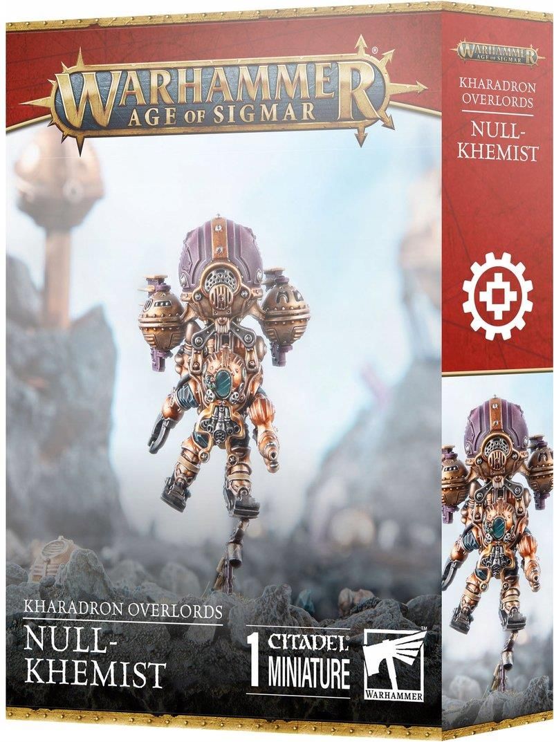 WARHAMMER AGE OF SIGMAR KHADRON OVERLORDS NULL KHEMIST PRE-ORDER PRE-ORDER WYSYŁKA PO 02.08.2025 WERJSA ANGIELSKA Null-Khemiści są od stóp do głów odziani w najnowsze, eterowo-napędzane kombinezony antymagiczne – gotowi wkroczyć nawet w najbardziej wrogie środowiska Królestw Śmiertelnych. Zaklęcia i mistyczne pociski gasną i rozpływają się w obliczu ich emiterów gazu neutralizującego, a ci, którzy ośmielą się podejść zbyt blisko, mogą liczyć się z tym, że ich kończyny zostaną zmiażdżone przez pneumatyczny chwytak. Ten wieloczęściowy plastikowy zestaw pozwala złożyć jednego Null-Khemistę – potężnego, latającego wojownika do armii Kharadron Overlords w grach Warhammer Age of Sigmar. To doskonali zabójcy, wyspecjalizowani w eliminowaniu kapłanów i czarodziejów wroga za pomocą neutralizatorów gazowych oraz poszukiwawczych zacisków. Są szybcy, trudni do zabicia i idealnie sprawdzają się w prowadzeniu agresywnych szarż w towarzystwie innych jednostek powietrznych twojej armii. Zestaw zawiera 21 plastikowych komponentów oraz 1 okrągłą podstawkę Citadel 40 mm. Model wymaga złożenia i nie jest pomalowany – zalecamy użycie Citadel Plastic Glue oraz farb Citadel Colour.