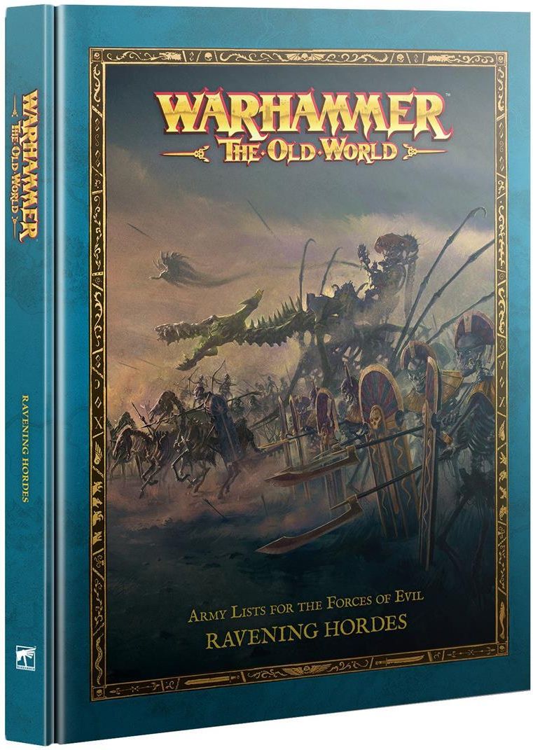 Księga zasad armijnych do gry bitewnej The Old World Ravening Hordes zawiera listy armii dla tych, którzy stoją po stronie zła: Orc and Goblin Tribes, the Warriors of Chaos, the Beastmen Brayherds, and the Tomb Kings of Khemri. Każda z nich zawiera profile każdej jednostki w armii, a także specjalne zasady dla tej frakcji, unikalne zaklęcia, magiczne przedmioty i wiele więcej, a także zdjęcia pięknie pomalowanych modeli. Język angielski, Twarda oprawa