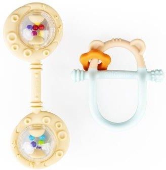 Dwupak łączy w sobie walory praktyczne i estetyczne, bawiąc oraz przynosząc ulgę w ząbkowaniu! W zestawie znajdziemy gryzak Miś oraz Podwójną Grzechotkę w kolorze beżowym. Obie zabawki posiadają wypustki, które podczas gryzienia będą delikatnie masować dziąsła ząbkującego bobasa. Kształt gryzaczka …