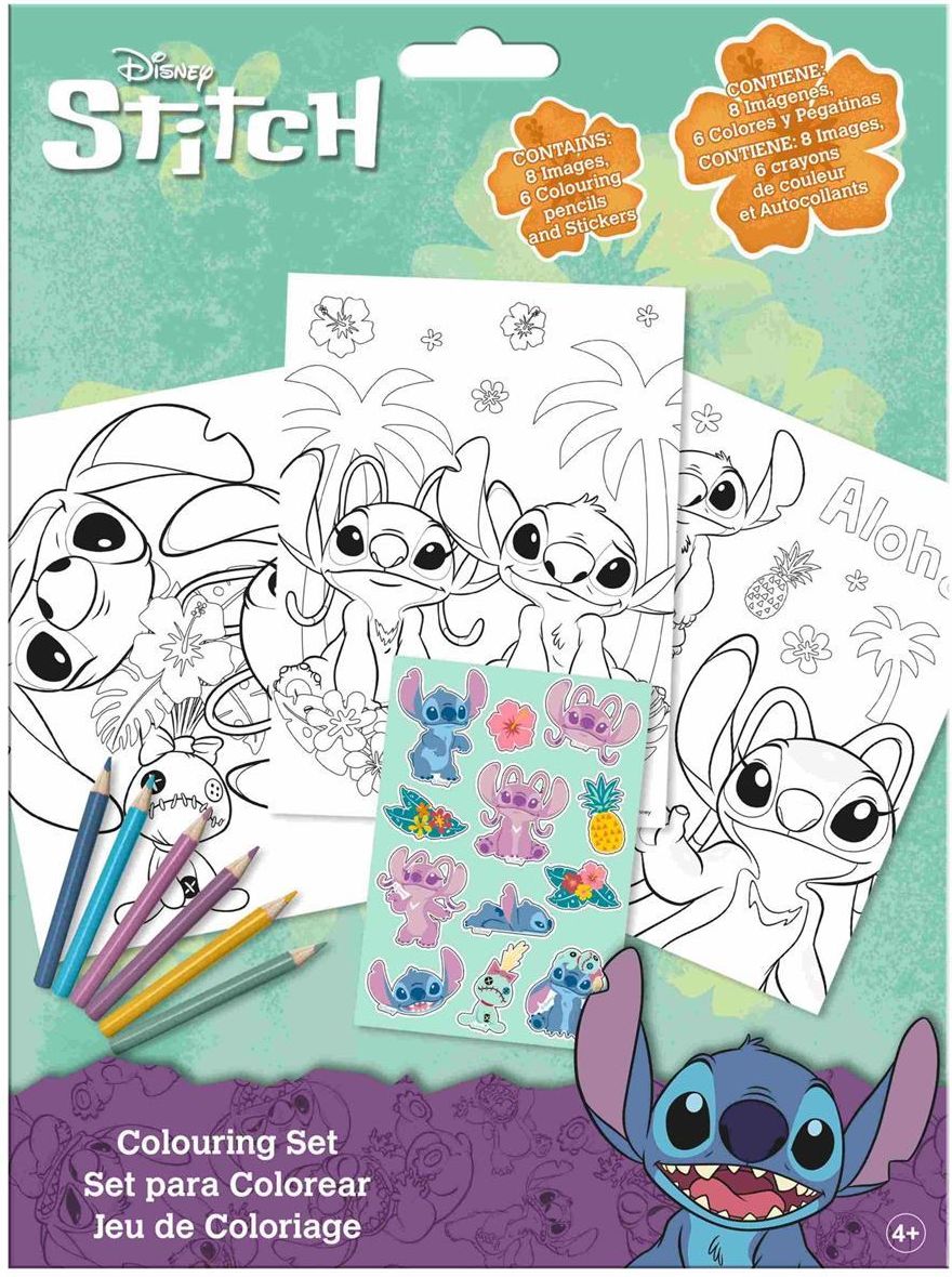 Disney Stitch kolorowanka z naklejkami i kredkamiPrzenieś się do bajkowego świata Stitcha i jego uroczej przyjaciółki Angel!Kolorowanka z naklejkami i kredkami to świetna zabawa oraz rozwijająca aktywność dla każdego małego fana Disneya.W zestawie znajdziesz:8 kolorowanek (luzem)kredki ołówkowe – 6 …