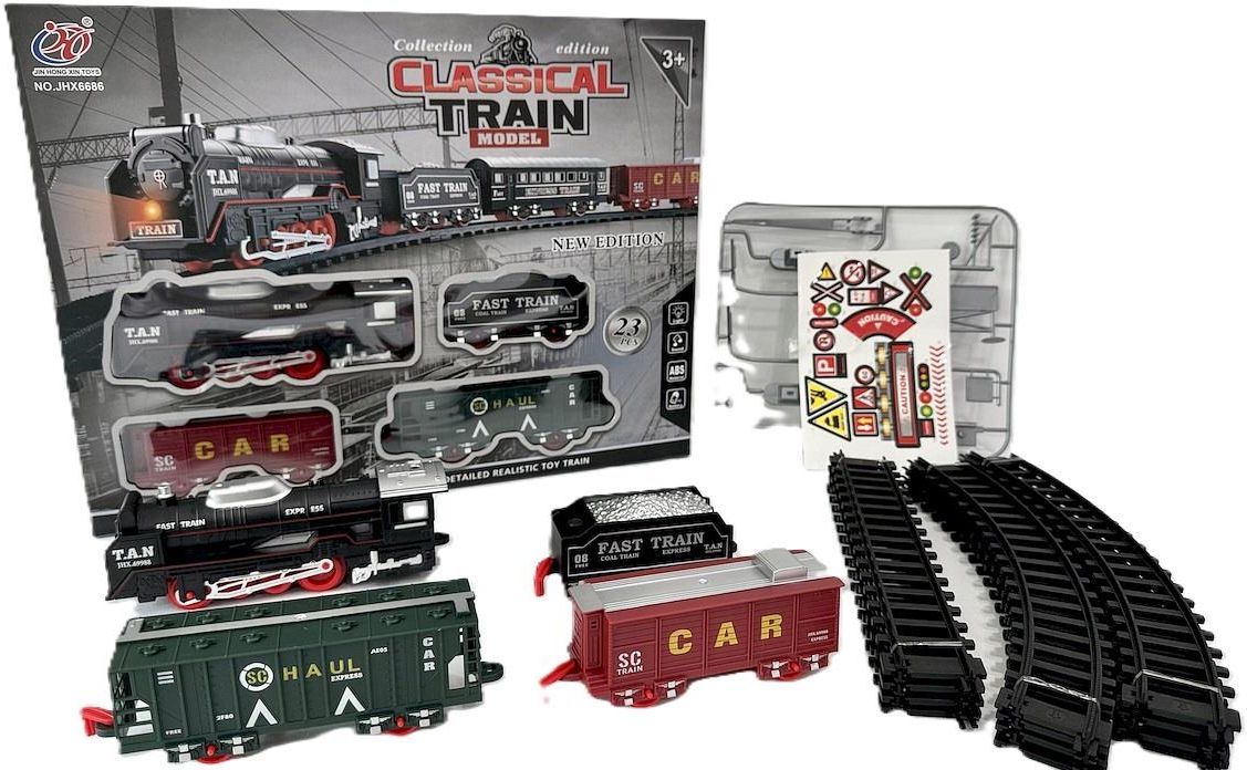 Kolejka dla dzieci lokomotywa i wagony i tory na baterie kompletny zestaw KOLEJKA DLA DZIECI – LOKOMOTYWA + WAGONY + TORY NA BATERIE • ZESTAW , KTÓRY ROŚNIE Z WYOBRAŹNIĄ ⭐️ Szukasz prezentu, który połączy zabawę, naukę i spokój rodzica? Ten zestaw kolejowy to klasyka, która nigdy się nie nudzi: lokomotywa na baterie ciągnie wagony, a elastyczne tory pozwalają tworzyć pętle, mijanki i mini-stacje. W kilka minut budujesz trasę i… ruszacie w podróż przez salon, pokój dziecięcy albo cały „kontynent” z klocków. To kolejka dla dzieci, która uczy planowania, koordynacji i logicznego myślenia, a przy tym daje prawdziwą frajdę – od pierwszego uruchomienia. Dlaczego ten zestaw? Efekt WOW od startu – naciśnij przycisk, a lokomotywa ruszy i poprowadzi wagony po torach ⏯. Rozwija wyobraźnię – dziecko samo układa tory kolejowe, łączy łuki i proste, planuje stację, most czy tunel z klocków. Uczy przez zabawę – przyczyna-skutek, koordynacja wzrokowo-ruchowa, motoryka mała, cierpliwość i koncentracja. Modułowa konstrukcja – elementy łatwo wpinać i wypinać; zestaw kompatybilny „ideowo” z wieloma akcesoriami (mostki, drzewka, znaki – według upodobań). Lekka, poręczna, bezpieczna – zaokrąglone krawędzie, gładkie łączenia, brak ostrych elementów. Dla jednego dziecka i całej paczki – świetna zabawa rodzinna, a także pomysł na zajęcia w przedszkolu/świetlicy. Zabawa, która rośnie – im więcej odcinków torów dołożysz, tym dłuższa trasa i nowe scenariusze. ♾ Co znajdziesz w pudełku? Lokomotywę na baterie – serce zestawu; uruchamiana przełącznikiem/przyciskiem. Wagony – klasyczne zaczepy pozwalają łączyć skład (towarowe, pasażerskie – zależnie od partii graficznej). Komplet torów – łuki + proste do złożenia pętli i wariantów torowiska. Dodatkowe drobiazgi (w zależności od wersji): znaki, drzewka, stacyjka – budujesz swój mini-świat. Uwaga: grafika i kolorystyka mogą się różnić między partiami – idea i funkcje pozostają te same. Co znajdziesz w pudełku? Lokomotywę na baterie – serce zestawu; uruchamiana przełącznikiem/przyciskiem. Wagony – klasyczne zaczepy pozwalają łączyć skład (towarowe, pasażerskie – zależnie od partii graficznej). Komplet torów – łuki + proste do złożenia pętli i wariantów torowiska. Dodatkowe drobiazgi (w zależności od wersji): znaki, drzewka, stacyjka – budujesz swój mini-świat. Uwaga: grafika i kolorystyka mogą się różnić między partiami – idea i funkcje pozostają te same. Szybki montaż krok po kroku (pierwsze uruchomienie) Rozłóż tory – zacznij od pętli, łącząc łuki na zatrzask. Dodaj proste – jeśli chcesz wydłużyć trasę lub zbudować stację. Włóż baterie do lokomotywy (typ AA/AAA – zgodnie z oznaczeniem; komora zabezpieczona śrubką). Zaczep wagony – upewnij się, że sprzęgi są poprawnie połączone. Uruchom pociąg – przełącznik w pozycję „ON” i… odjazd! Szybki montaż krok po kroku (pierwsze uruchomienie) Rozłóż tory – zacznij od pętli, łącząc łuki na zatrzask. Dodaj proste – jeśli chcesz wydłużyć trasę lub zbudować stację. Włóż baterie do lokomotywy (typ AA/AAA – zgodnie z oznaczeniem; komora zabezpieczona śrubką). Zaczep wagony – upewnij się, że sprzęgi są poprawnie połączone. Uruchom pociąg – przełącznik w pozycję „ON” i… odjazd! Co rozwija kolejka? (pedagogicznie) Logiczne myślenie i plan – jak ułożyć tory, by pociąg przejechał całą pętlę bez rozpinania? Ręka-oko – łączenie elementów, dopasowywanie zakrętów i prostych, koordynacja dłoni. Wytrwałość – testy, poprawki, ponowne próby – świetne ćwiczenie cierpliwości. Wyobraźnia i narracja – bilety, dworce, towar, logistyka; dziecko układa opowieści i wciela się w maszynistę. Współpraca – budowanie trasy z rodzeństwem/rodzicem uczy komunikacji i dzielenia się rolami. 🎲 20 pomysłów na zabawę (dom, przedszkole, świetlica) Dyżurny ruchu – ustaw semafory (z klocków/karteczek) i wydawaj sygnały. Transport towarów – ładuj „węgiel” z klocków do wagonów towarowych. Bilet do wyobraźni – projektuj bilety i sprawdzaj je przed odjazdem. Nocna zmiana – przygaś światło, świeć latarką na pociąg – efekt niesamowity. Most i tunel – zbuduj przeszkody z książek/klocków i sprawdź, czy skład je pokona. Wyścig kurierów – kto szybciej ułoży pętlę torów ⏱ Mapa miasta – rozrysuj stacje na kartce i przypisz im nazwy. Akcja ratunkowa – zatrzymanie pociągu „na czas” (reagowanie na znak „STOP”). Logistyka paczek – rozwoź „listy” do stacji (✉️), segreguj ładunki. Tunele dźwiękowe – przykryj fragment toru kartonem – echo przejazdu. Most obrotowy – wymyśl własny mechanizm „zmiany toru” (przełączanie odcinków). Konduktor rymuje – rymowanki przy kontroli biletów (zabawa słowem). Pogoda na trasie – stacja „☀️/☁️/❄️” i dostosowanie jazdy do „warunków”. Stacja towarowa – plan rozładunku „towaru” w kolejności: żywność – zabawki – książki. Zegar peronowy – odliczanie czasu do odjazdu ⏰. Most linowy – tasiemka jako „rzeka” – pociąg nie może do niej wpaść. Reklamy na dworcu – plakat z regułami bezpieczeństwa i „biletomat” ⚖️. Kolej na słowa – alfabetem nazw stacji (A – „Akacjowa”, B – „Brzozowa”…). Mistrz napraw – „serwis” składów (sprawdź łączenia, sprzęgi, czystość kół). Wielki finisz – parada pociągów i dyplom maszynisty dla dziecka. ✂️