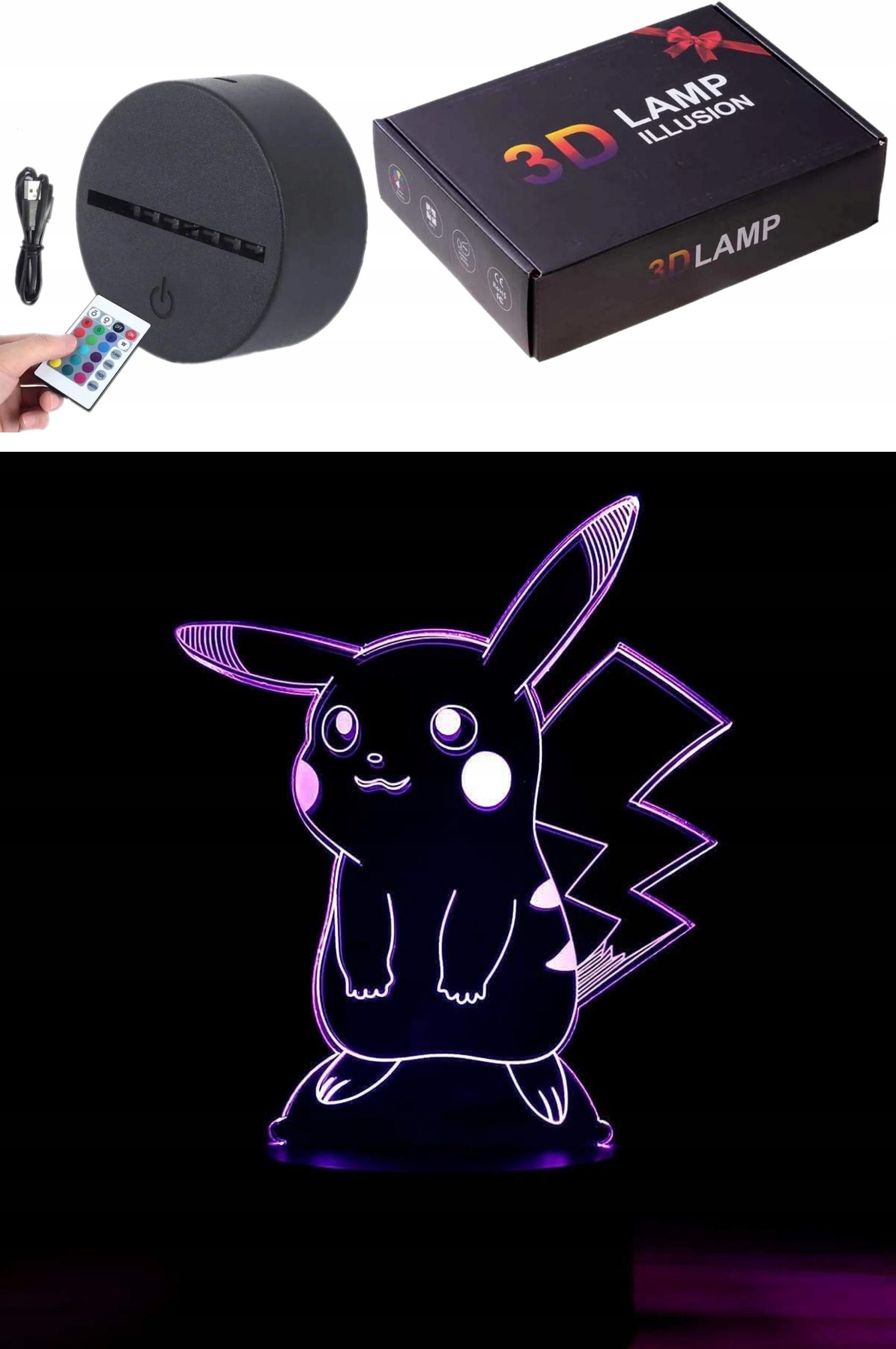 Lampka Nocna Neon Akryl Dekoracja 3D Hologram Led Rgb Pokemon Pikachu Pilot Nowy Sącz