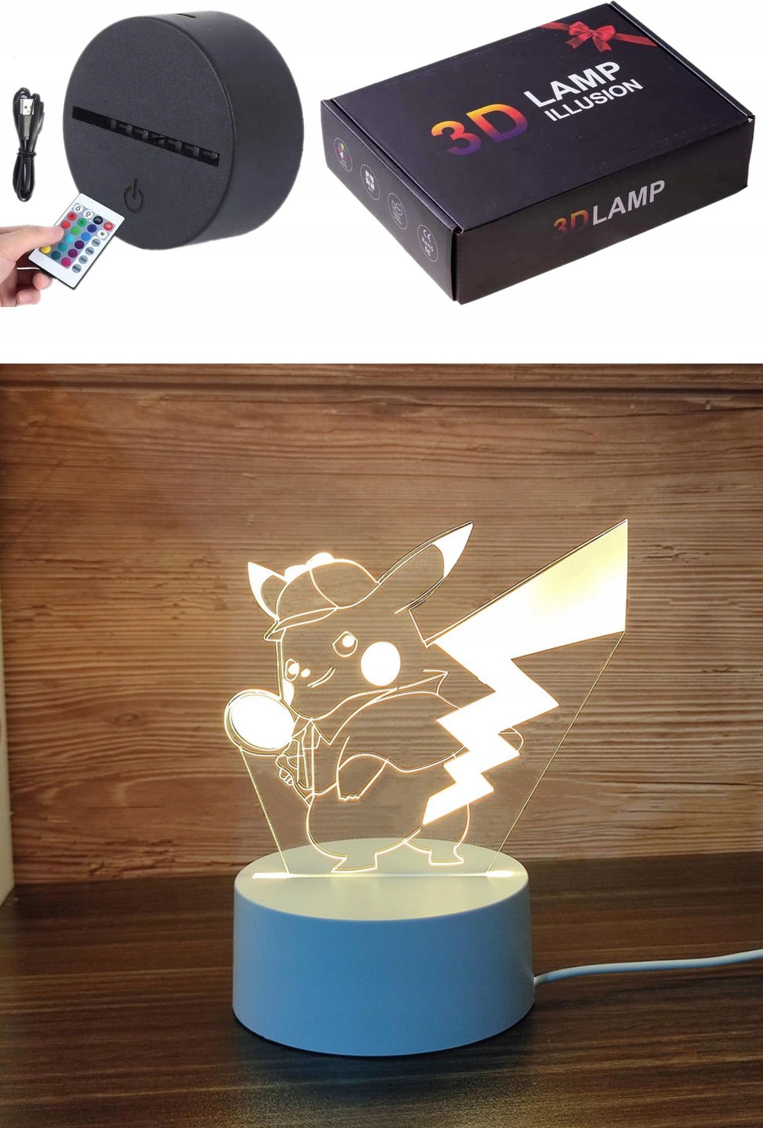 Lampka Nocna Neon Akryl Dekoracja 3D Led Rgb Detektyw Pikachu + Pilot Nowy Sącz