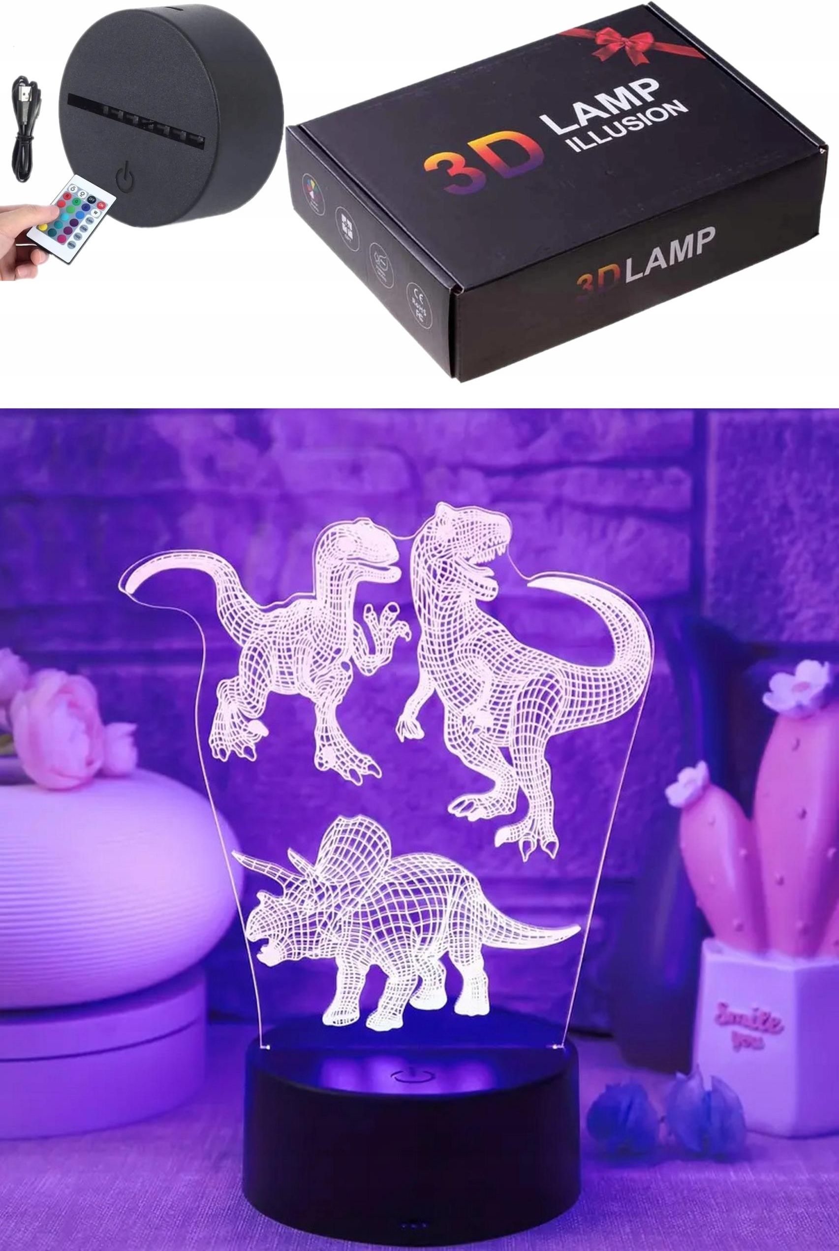 Lampka Nocna Neon Akryl Dekoracja 3D Led Rgb Jurassic Park Dinozaury Pilot Nowy Sącz