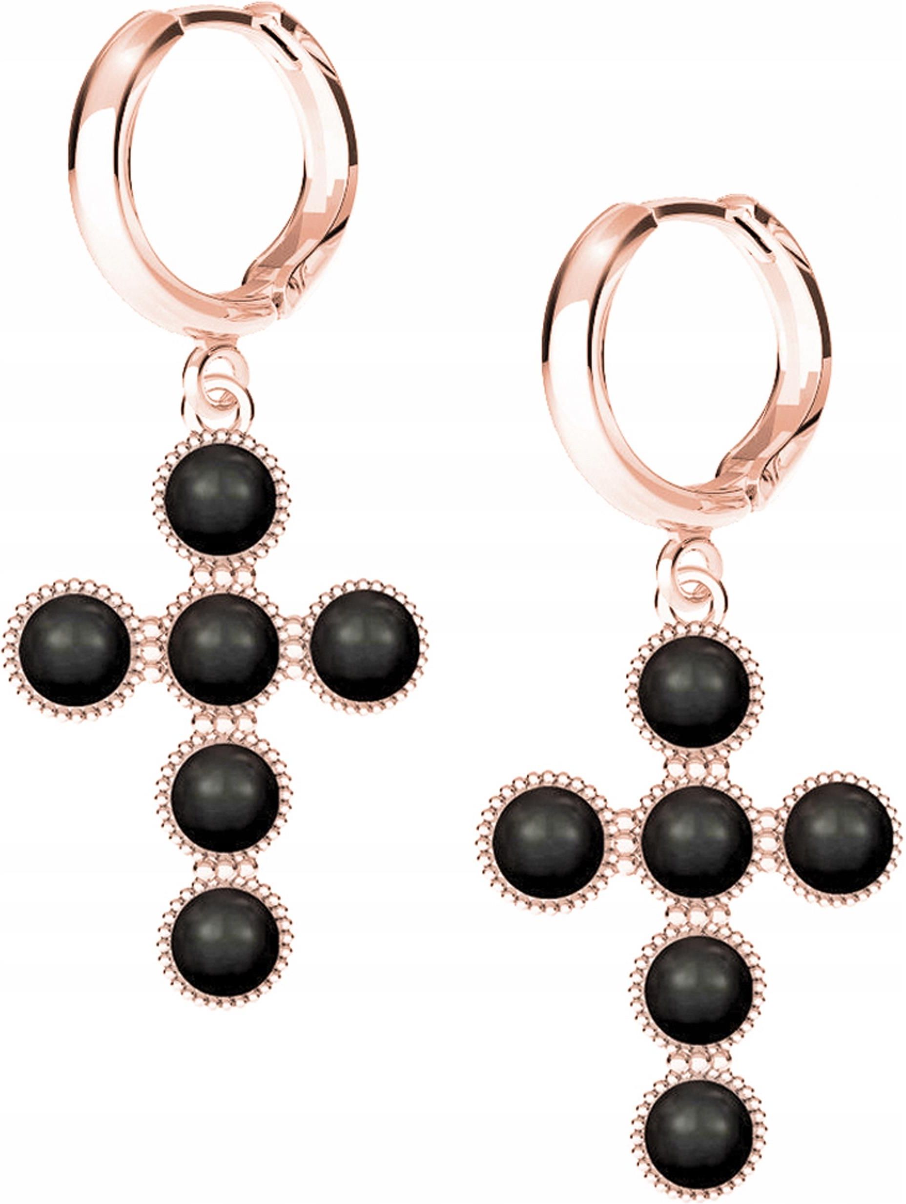 Larezo Kolczyki Krzyż Perły Czarne różowe złoto Nowy Sącz
