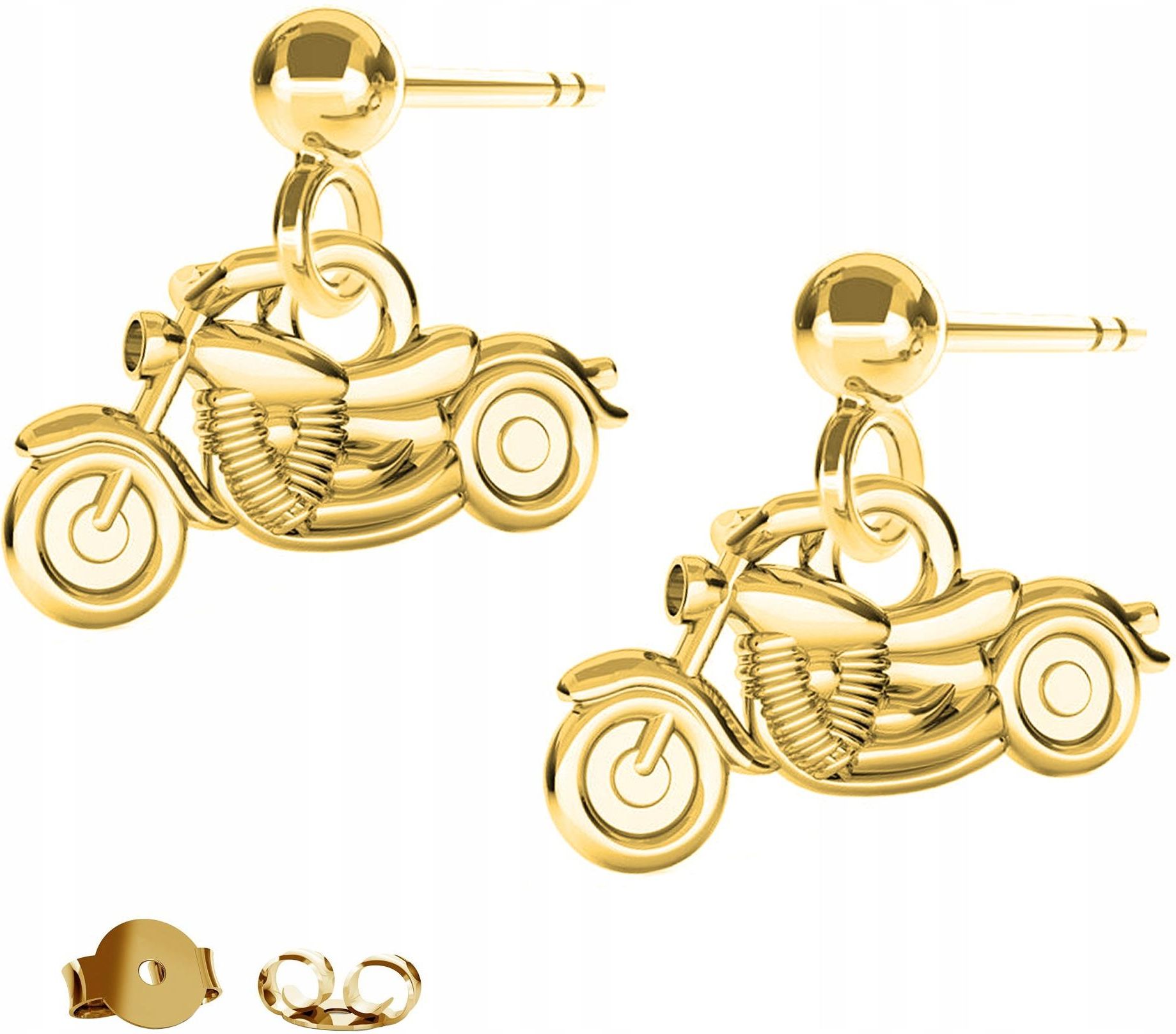 Kolczyki złote Motocykl 💙 Surowiec: Srebro 💙 Próba: 925 💙 Powłoka: Złoto próby 999 (24 Karaty) 💙 Zapięcia kolczyków: Sztyft 💙 Wysokość zawieszki: 7 mm 💙 Motyw: Inny 💎 Biżuteria pozłacana jest czterema warstwami 24-karatowego złota oraz hartowana przez naszych jubilerów w pracowniach …
