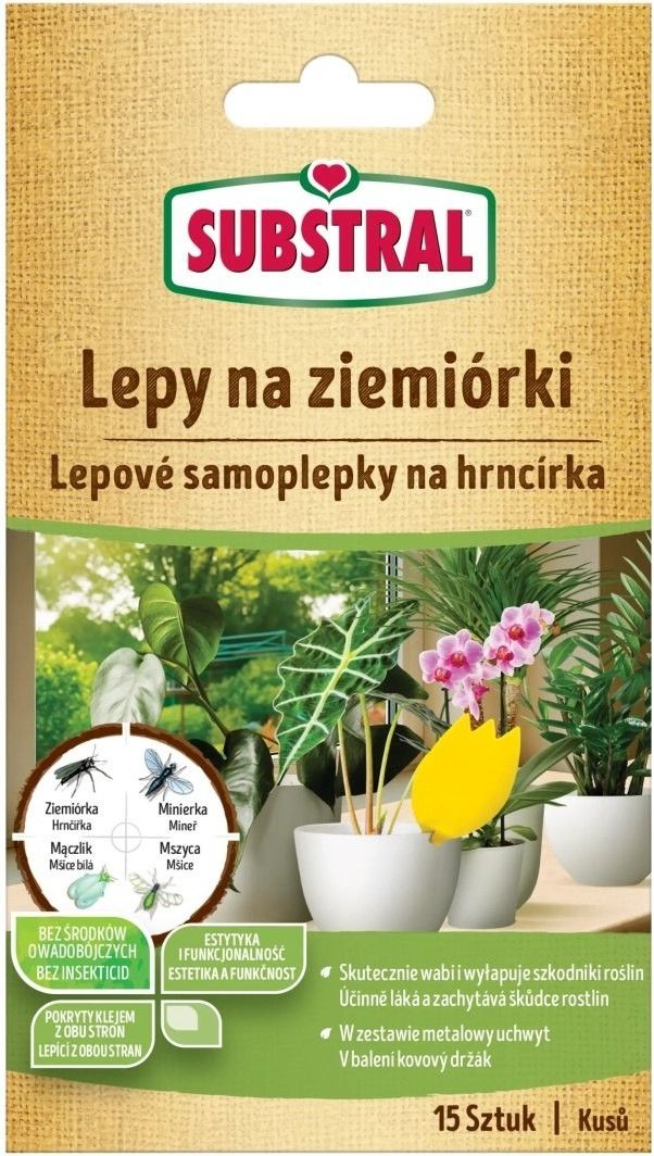 Lepy na ziemiórki 15 szt. SUBSTRAL Lepy na ziemiórki od SUBSTRAL to skuteczne i bezpieczne rozwiązanie do zwalczania latających szkodników na roślinach doniczkowych, balkonach i w domowych wnętrzach. Dzięki prostocie użycia i ekologicznej formule, pozwalają na kontrolę populacji owadów bez konieczności stosowania chemicznych środków. To niezawodny sposób na utrzymanie zdrowych roślin i czystości wokół nich. Przeznaczenie i zakres działania Lepy na ziemiórki zostały stworzone z myślą o skutecznym zwalczaniu różnych latających szkodników. Są szczególnie polecane do ograniczania populacji ziemiórek, mączlików, muchówek oraz mszyc, które mogą stanowić poważny problem zarówno w domowych warunkach, jak i na balkonach. Pułapki te mogą być używane w doniczkach, na parapetach, a także w miejscach, gdzie występuje duże natężenie owadów latających. Ich uniwersalność pozwala na ich zastosowanie zarówno wewnątrz pomieszczeń, jak i na zewnątrz, bez ryzyka szkodliwego wpływu na rośliny jadalne czy domowe zwierzęta. Pojemność, wydajność i zawartość zestawu W zestawie znajduje się 15 sztuk lepów, które zapewniają długotrwałą ochronę przed owadami. Odpowiednia liczba pułapek pozwala na skuteczne zabezpieczenie kilku roślin lub większej przestrzeni w domu i na balkonie. Pułapki są gotowe do użycia, co czyni ich eksploatację bardzo wygodną i prostą. Działają przez wiele tygodni, nie wysychając ani nie tracąc lepkości, co gwarantuje długotrwałą ochronę bez konieczności wymiany. W zestawie nie ma dodatkowych elementów – wystarczy umieścić lepy w wybranych miejscach, aby szybko zauważyć efekty. Rodzaj opakowania i sposób aplikacji Lepy na ziemiórki mają formę samoprzylepnych powierzchni, które można łatwo umieścić w wybranych miejscach. Wystarczy wyciągnąć je z opakowania i zawiesić lub postawić w pobliżu roślin czy miejsc, gdzie pojawiają się owady. Ze względu na swoją konstrukcję, nie wymagają skomplikowanych instrukcji – ich działanie jest natychmiastowe i bezproblemowe. Żółty kolor skutecznie przyciąga owady, które po kontakcie z klejem zostają unieruchomione. Pułapki można ustawiać w różnych miejscach, w zależności od potrzeb, zapewniając skuteczną ochronę i komfort użytkowania. Bezpieczeństwo i składniki aktywne Produkty SUBSTRAL wyróżniają się bezpieczeństwem użytkowania, ponieważ nie zawierają insektycydów ani innych szkodliwych chemikaliów. Specjalny klej, opracowany tak, aby zapewnić maksymalną skuteczność, jest bezpieczny dla użytkowników i nie przykleja się do palców czy innych powierzchni. Brak zapachu sprawia, że można je stosować w domu i na balkonie bez obaw o nieprzyjemne wonie. To ekologiczna alternatywa dla chemicznych środków zwalczających owady, gwarantująca bezpieczną i skuteczną ochronę roślin i przestrzeni domowej. Zapach i czas działania Pułapki działają bez zapachu, co czyni je idealnym rozwiązaniem dla osób ceniących komfort i naturalne warunki. Dzięki wysokiej lepkości i odporności na warunki atmosferyczne, zapewniają długotrwałą ochronę na wiele tygodni. To rozwiązanie, które pozwala na spokojne cieszenie się zdrowymi roślinami i czystością wokół nich, bez konieczności stosowania chemicznych środków odstraszających czy oprysków. Lepy na ziemiórki 15 szt. SUBSTRAL to praktyczny i bezpieczny sposób na skuteczną walkę z latającymi szkodnikami, który zyskał uznanie wśród miłośników roślin i domowych ogrodników. To rozwiązanie, które pozwala cieszyć się pięknem i zdrowiem swoich roślin, jednocześnie chroniąc domowe i balkonowe przestrzenie przed niechcianymi owadami.