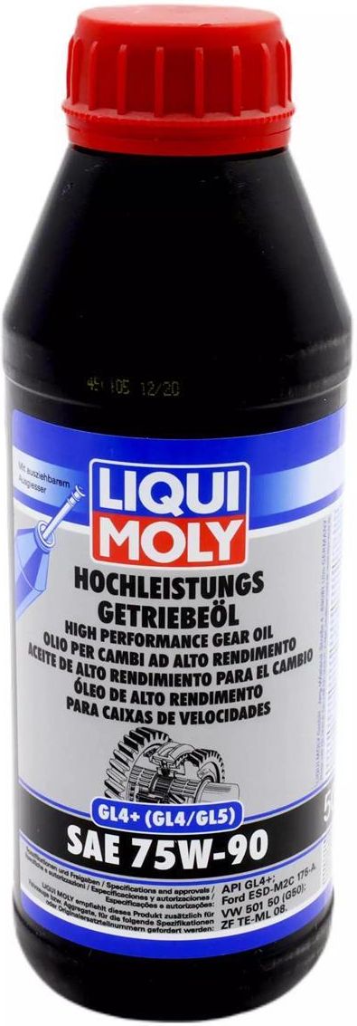 olej przekładniowy liqui moly gl4+ 75w-90 w opakowaniu o pojemności 500 ml to w pełni syntetyczny olej przeznaczony do przekładni manualnych i głównych. dzięki swojej zaawansowanej formule sprawdza się w najtrudniejszych warunkach, jest odporny na wahania temperatury oraz zapewnia łatwą zmianę biegów. Wyjątkowe cechy odporność na wahania temperatury: gwarantuje stabilne działanie przekładni w każdych warunkach. minimalizacja zużycia: chroni mechanizm i wydłuża jego żywotność. odporność na starzenie: zapewnia długotrwałe właściwości smarne. kompatybilność z przekładniami manualnymi: idealny do pojazdów ford, vw i zf. normy i dopuszczenia: olej spełnia rygorystyczne wymagania oraz specyfikacje: api gl4+ ford esd m2c 175-a vw 501.50 (g50) zf te-ml 08a . Olej przekładniowy liqui moly gl4+ 75w-90 w opakowaniu o pojemności 500 ml to w pełni syntetyczny olej przeznaczony do przekładni manualnych i głównych. dzięki swojej zaawansowanej formule sprawdza się w najtrudniejszych warunkach, jest odporny na wahania temperatury oraz zapewnia łatwą zmianę biegów. wyjątkowe cechy: odporność na wahania temperatury: gwarantuje stabilne działanie przekładni w każdych warunkach. minimalizacja zużycia: chroni mechanizm i wydłuża jego żywotność. odporność na starzenie: zapewnia długotrwałe właściwości smarne. kompatybilność z przekładniami manualnymi: idealny do pojazdów ford, vw i zf. normy i dopuszczenia:olej spełnia rygorystyczne wymagania oraz specyfikacje: api gl4+ ford esd m2c 175-a vw 501.50 (g50) zf te-ml 08a. Rodzaj połączenia: Puszka Pojemność [ml]: 500 Klasa lepkości SAE: 75W-90 Dopuszczenie przez producenta: API GL4+ Zalecenie producenta oleju: Ford ESD-M2C 175-A Zalecenie producenta oleju: VW 501 50 (G50) Zalecenie producenta oleju: ZF TE-ML 08