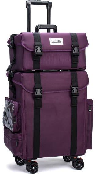 Szczegóły produktu: Materiał: nylon balistyczny 1680D Kolor: purpurowy Rozmiar górnego kuferka: 46x34x22cm Rozmiar dolnego kufra: 50x36x55cm Waga: 8 kg Walizka LUXURY 2w1 to idealne rozwiązanie dla mobilnych wizażystów, została zaprojektowana z myślą o optymalnym przechowywaniu kosmetyków, pędzli oraz akcesoriów do makijażu. Walizka wykonana jest z wytrzymałego i odpornego na wodę nylonu balistycznego o splocie 1680D (materiał wykorzystywany przy produkcji kamizelek kuloodpornych).