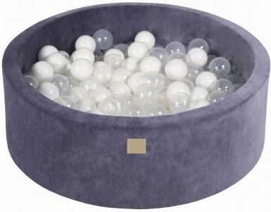 Meowbaby Basen Okrągły Velvet 30Cm Szaroniebieski 200 Piłek Białe Transparentne Nowy Sącz