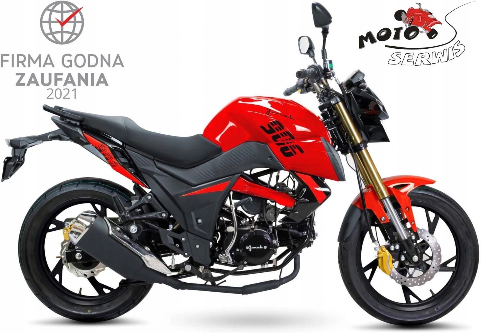 AUTORYZOWANY PARTNER HANDLOWY FIRM: ROMET, JUNAK, CF MOTO, WILMAT MOTO-SERWIS OFERUJE: Motorower JUNAK 906 50 cc EURO 5 !!! Wymagane uprawnienia do prowadzenia tego jednośladu: Karta motorowerowa (uzyskana przed 19.01.2013) lub Ukończony 18 rok życia (przed 19.01.2013) lub Prawo jazdy AM lub Prawo jazdy każdej innej kategorii. PARAMETRY: wymiary: 2030×775×10610 mm silnik: czterosuwowy, jednocylindrowy, dwu-zaworowy, chłodzony powietrzem zasilanie: wtrysk paliwa pojemność: 49 ccm przeniesienie napędu: łańcuch, 4 biegi moc maksymalna (KM): 2,72 hamulec przód/tył: tarczowy hydrauliczny / tarczowy hydrauliczny opony przód/tył: 90/90 - 17 / 110/80 - 17 felgi: aluminiowe masa własna: 96 KG pojemność zbiornika paliwa: 11 l dostępne kolory: czerwony, czarny Jesteś zainteresowany zakupem na RATY ??? Zadzwoń lub wypełnij wniosek na stronie moto-serwis.sklep.pl POJAZD PO ZEROWYM PRZEGLĄDZIE GOTOWY DO JAZDY Zapraszamy do zakupów posiadamy pełna ofertę firm: ROMET MOTORS, JUNAK, CF MOTO, WILMAT Ponad 400 punktów serwisowych w całym kraju Ogólnopolska gwarancja 24 miesiące RATY!!!!! Możliwość zakupu ratalnego Zero pierwszej wpłaty Raty od 3 do 60 miesięcy Możliwość rat na telefon lub e-maila Podpisujesz umowę przy odbiorze towaru Sprzedajemy towar najwyższej jakości, fabrycznie nowy Szybka realizacja zamówienia Niskie ceny!!!!! SERWIS, PRZEGLĄDY GWARANCYJNE I POGWARANCYJNE ORAZ CZĘŚCI ZAMIENNE DO WSZYSTKICH MODELI TRANSPORT!!!!!! Nasze pojazdy dowozimy własnym transportem pod wskazany adres. Dostawa pojazdów w promieniu 50km od Nowego Sącza GRATIS!!!!!!!! Nasi kierowcy pomogą państwu zapoznać się z właściwymi metodami użytkowania zakupionego pojazdu. Jeśli mieszkasz dalej skontaktuj się z nami w celu ustalenia kosztów transportu. Dostawa na terenie CAŁEJ POLSKI. Możliwy odbiór osobisty w naszych sklepach: GRYBÓW, BOBOWA, NOWY SĄCZ W RAZIE PYTAŃ PROSZĘ O KONTAKT Faktura: faktura VAT Uszkodzony: