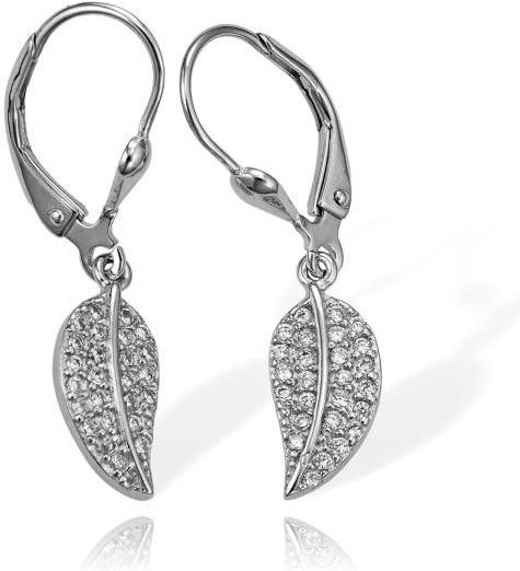 Norbisrebro Modne Srebrne Rodowane Wiszące Kolczyki Listki z Cyrkoniami Nowy Sącz