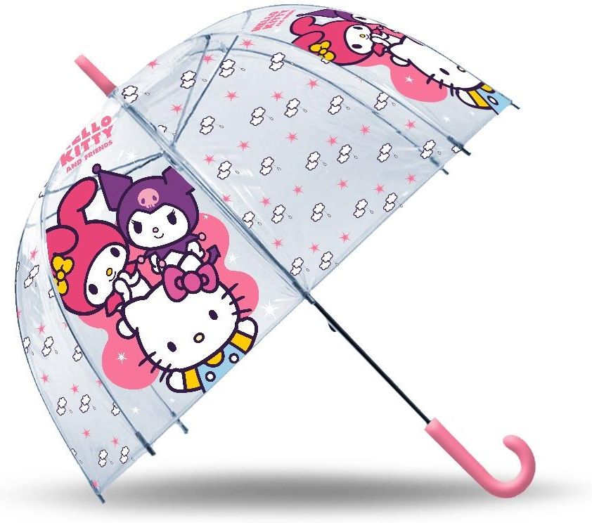 Parasol dziecięcy Hello Kitty & Friends – Melody, Kuromi, Hello KittyBajkowa ochrona przed słońcem i deszczemPrzezroczysty parasol ozdobiony ukochanymi postaciami z serii Sanrio - My Melody i Kuromi. Ten wyjątkowy parasol łączy w sobie praktyczną funkcjonalność z uwielbianym przez dzieci …