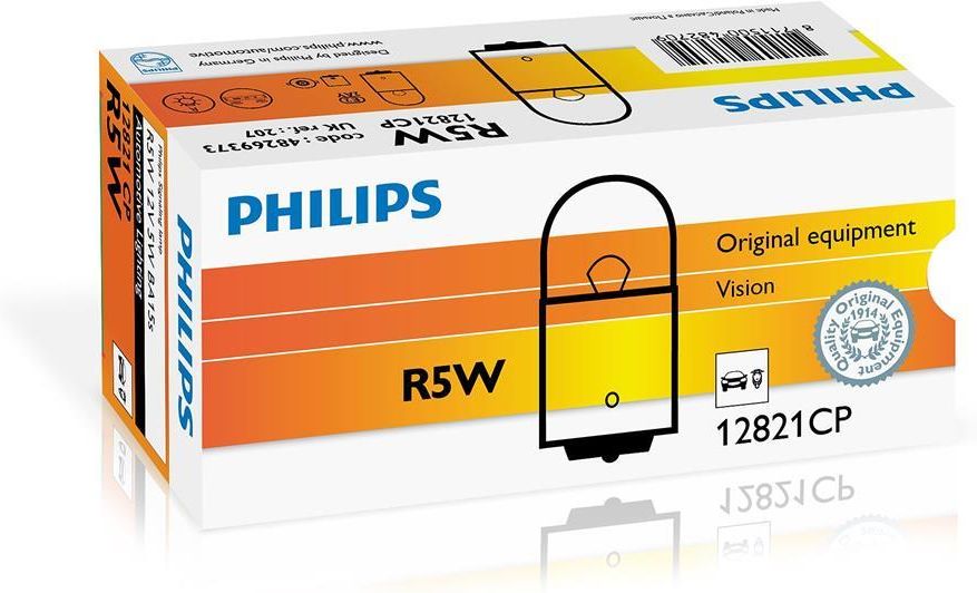 Żarówki R5W marki Philips, stosowane w światłach pozycyjnych, stop, oświetleniu tablicy rejestracyjnej i deski rozdzielczej oraz kierunkowskazach samochodów osobowych i dostawczych. Philips to znany producent oświetlenia, oferujący oryginalne wyposażenie oraz produkty na wtórny rynek części …
