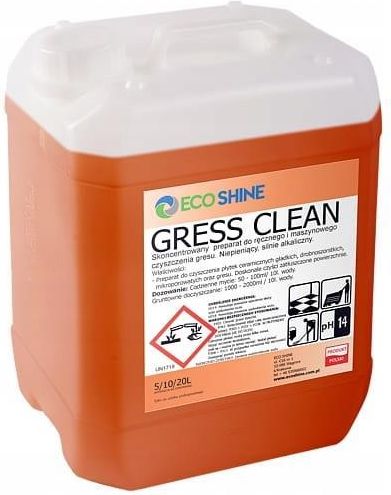 GRESS CLEAN 5L Niepieniący, skoncentrowany, silnie alkaliczny preparat do ręcznego i maszynowego czyszczenia gresu i podłóg odpornych na zasady. Właściwości Preparat do czyszczenia płytek ceramicznych gładkich, drobnoszorstkich, mikroporowatych oraz gresu. Doskonale czyści zatłuszczone powierzchnie. Rozpuszcza silne zanieczyszczania. Nie pozostawia smug. Rodzaje czyszczenia mycie ręczne maszynowe ciśnieniowe Zastosowanie niechłonne i słabochłonne posadzki twarde płytki ceramiczne gres kamień naturalny oraz sztuczny beton granit nieszkliwiony klinkier Odradzane zastosowanie powierzchnie wrażliwe na zasady chłonne posadzki twarde Sposób użycia i dozowania Bieżące mycie: 50 – 100 ml / 10 L wody. Mycie miejsc o dużym natężeniu ruchu: 100 – 200 ml / 10 L wody. Gruntowne doczyszczanie: 1000 – 2000 L / 10 litrów wody. Przy ręcznym czyszczeniu zaleca się spłukać posadzki wodą. Zaleca się co najmniej raz w tygodniu stosować kwaśny preparat GRESS ACID Bezpieczeństwo stosowania Preparat zasadowy, żrący. Podczas stosowania używać rękawic i okularów ochronnych. Przed pierwszym użyciem zapoznać się z kartą charakterystyki preparatu. Zaleca się zawiesić na ścianie w miejscu przechowywania płynu, stanowiskową preparatu. Dane techniczne Termin trwałości: 24 miesiące. Gęstość: 1,1 -1,2g/ml pH koncentratu 14 (pH 1 % roztworu 12) U NAS ZNAJDZIESZ RÓWNIEŻ INNE PRODUKTY FIRMY ECO SHINE