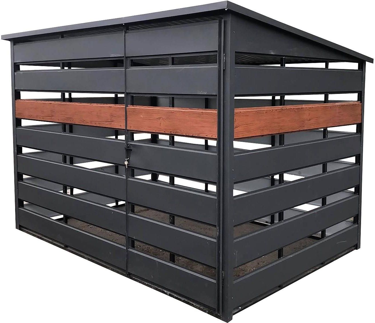 WIATA ŚMIETNIKOWA 3x4 W KOLORZE GRAFITOWYM/ pas ORZECH -wysokość całkowita z przodu ok. 2,21m -wysokość całkowita z tyłu ok.1,88m -na dachu blacha trapezowa w kolorze -okucia w kolorze -spad dachu do tyłu -panel poziomy szeroki -montaż gratis (bez kotwiczenia) Konstrukcja mieszana: kątownik i …