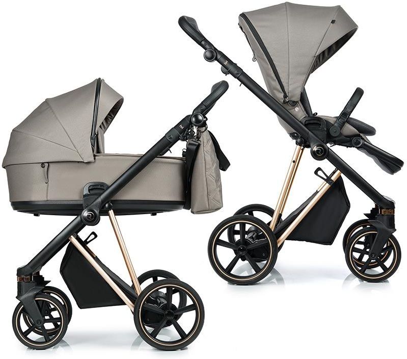 Wózek wielofunkcyjny Roan Ivi, 2w1 Mocca 2.0 Wózek wielofunkcyjny Roan Ivi Najnowszy wózek wielofunkcyjny ze skrętnymi kołami oraz amortyzatorem stelaża, na kołach piankowych (nieprzebijalnych). Firma Roan jest jednym z największych i najlepszych producentów wózków w Polsce. Ich wyroby są uznane w wielu krajach na całym świecie. Solidność, funkcjonalność oraz jakość wykonania są priorytetem przy projektowaniu i produkcji wózków dziecięcych. Wszystkie tkaniny użyte do produkcji wózków posiadają restrykcyjne certyfikaty Öko-Tex Standard 100. Wózek otrzymujesz fabrycznie nowy i wyprodukowany specjalnie dla Ciebie! KONFIGURACJA Zestaw 2w1 (podwozie wózka + gondola + spacerówka + torba do wózka + folia + moskitiera + kocyk do wózka + uchwyt na kubek) Roan Ivi Charakterystyka Waga wózka głębokiego ze stelażem 14kg, Waga wózka spacerowego ze stelażem 13kg, lekki aluminiowy stelaż, komfortowe zawieszenie, system SAS - dodatkowy amortyzator z możliwością blokady, który wpływa na komfort prowadzenia wózka, przednie koła obrotowe z możliwością blokady, system Anti Shock, system stabilizacji kół obrotowych, bezobsługowe, bezdętkowe koła zapewniające płynne prowadzenie, centralny hamulec, szybki i prosty system składania ramy do małych rozmiarów, duży kosz na zakupy, regulowana rączka obszyta eko-skórą, łatwy i wygodny system „Double - Click” przy montażu gondoli, spacerówki, fotelika, wysokiej jakości atestowane tkaniny, duża, wygodna gondola, dostosowana do każdej pory roku, wnętrze gondoli wykonane z tkaniny spełniającej najwyższe standardy bezpieczeństwa, lekka, kompaktowa spacerówka składana razem ze stelażem, możliwość montażu spacerówki przodem lub tyłem do kierunku jazdy, przedłużana budka w wersji spacerowej chroniąca przed wiatrem, zimnem i promieniami słonecznymi, pięciopunktowe pasy bezpieczeństwa z regulacją wysokości, regulowane oparcie do pozycji leżącej w wersji spacerowej, regulowany podnóżek, odpinana barierka, obszyta eko-skórą, pokrowiec na nóżki, Opis funkcji wózka Gondola wózka - duża, pełnowymiarowa gondola o długości 80cm zapewni komfort i dużo miejsca dla Twojego dziecka. Zmieści się tam również śpiworek na zimę. Regulacja oparcia w gondoli - gondola posiada regulację oparcia w środku w gondoli. Centralny hamulec - umożliwia zablokowanie/odblokowanie kół wózka jednym naciśnięciem stopy Przednie koła samonastawne - kółka skrętne 360 stopni z możliwością zablokowania do jazdy na wprost Piankowe i łożyskowane koła - koła przednie i tylne piankowe, nieprzebijalne, opony niskoprofilowe. Piasty kół podwójnie łożyskowane. Aluminiowy stelaż - stelaż wózka wykonany jest z aluminium, powlekany profesjonalną farbą, utwardzaną w piecu. Kocyk do wózka - przydatny, miły w dotyku kocyk do wózka, Moskitiera - niezwykle przydatne wyposażenie, chroni dziecko przed komarami a w szczególności przed owadami (pszczoły, osy itp.) Amortyzator - dodatkowy amortyzator umieszczony w konstrukcji stelaża niweluje wibracje i nierówności. Pokrowiec przeciwdeszczowy - niezbędny na spacerze. Pokrowiec foliowy z otworem wentylacyjnym zakładany na gondolę wózka. Torba do wózka - duża praktyczna torba, mocowana na rączce do wózka. Kosz na zakupy - duży kosz na zakupy, który pomieści sprawunki do 5 kg . System Double Click - błyskawiczny sposób wpinania gondoli/spacerówki/fotelika. Wystarczy sekunda aby wpiąć lub wypiąć ze stelaża gondolę, spacerówkę lub fotelik samochodowy. Rączka do wózka - wielostopniowa regulacja rączki wózka na wysokość to komfort prowadzenia wózka dla rodziców o różnym wzroście. Rączka dla podniesienia komfortu została obszyta Eko skórą. Podnóżek wózka w spacerówce - podnóżek regulowany w kilku pozycjach, Barierka ochronna - wypinana barierka w spacerówce. Można ją wypiąć z lewej lub prawej strony oraz całkowicie wypiąć ze spacerówki. Pasy bezpieczeństwa - spacerówka wyposażona jest w 5-punktowe szelki, które utrzymają dziecko w spacerówce, zabezpieczając je przed wypadnięciem z wózka. Dodatkowo w spacerówce znajduje się pas krokowy montowany do barierki wózka spacerowego. Pokrowiec na nóżki w spacerówce - w wyposażeniu wózka znajduje się pokrowiec na nóżki, który po przypięciu do budki stanowi doskonałą ochronę przed zimnem i wiatrem. Podnóżek - w konstrukcji wózka zamontowano praktyczny stopień (podnóżek) dla dziecka. Umożliwia on starszemu dziecku wchodzenie i wychodzenie z wózka spacerowego. Budka w spacerówce - regulowana Oparcie spacerówki - zastosowana kilku-stopniowa regulacja oparcia siedziska spacerówki umożliwia ustawienie oparcia w kilku pozycjach, włącznie z pozycją leżącą, półpłaską. Montaż spacerówki - siedzisko spacerówki można zamontować przodem lub tyłem do kierunku jazdy. Z reguły małe dziecko potrzebuje kontaktu wzrokowego z matką, wtedy przyda się możliwość zamontowania spacerówki tyłem do kierunku jazdy a przodem do rodzica. Starsze dziecko, bardziej ciekawe świata będzie zadowolone z możliwości jazdy przodem do kierunku jazdy - ten model spacerówki to umożliwia. Możliwość montażu fotelika na stelażu (konieczny zakup adapterów lub fotelika z adapterami)- w tym nowoczesnym wózku wielofunkcyjnym masz możliwość zamontowania na stelażu wózka, fotelika samochodowego Avionaut KITE z grupy 0+ (0-13kg) UWAGA! W zestawie spacerówka w nowej wersji 2.0! (zdjęcie przedstawia jeszcze spacerówkę w wer.1.0 - starszy model) nowy, szerszy podnóżek szelki z klamrą magnetyczną siedzisko spacerówki składane razem ze stelażem (nie trzeba wypinać siedziska aby złożyć stelaż wózka), bez względu na to w którym kierunku jest zamontowana spacerówka plecy spacerówki obszyte tkaniną w kolorze wózka, z dodatkową, praktyczną kieszonką na drobiazgi przedłużony daszek przeciwsłoneczny d