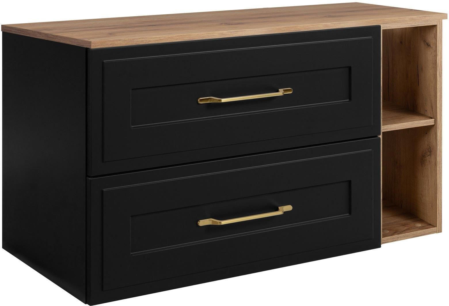 Rodan Zestaw Mebli Łazienkowych Classic Z Szafką Podumywalkową 60Cm Czarny Otwartą I Blatem 80Cm Dąb Nowy Sącz