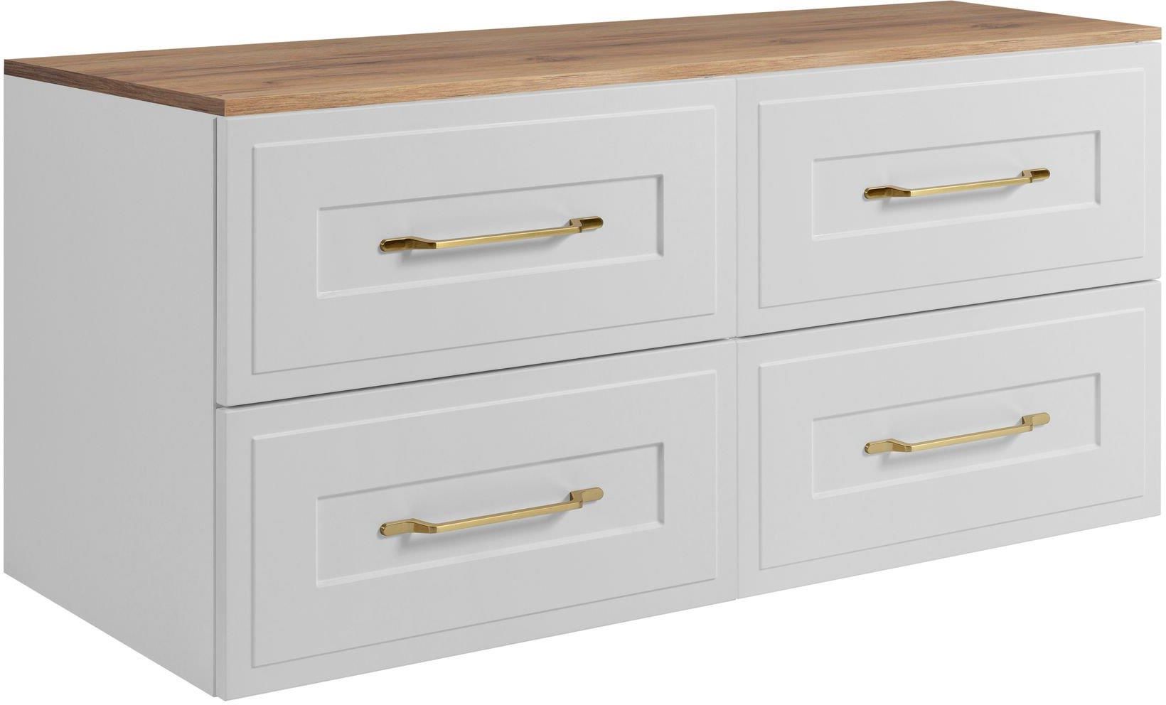 Rodan Zestaw Mebli Łazienkowych Classic Z Szafkami Podumywalkowymi 60Cm Biały I Blatem 120Cm Dąb Craft Złoty Nowy Sącz