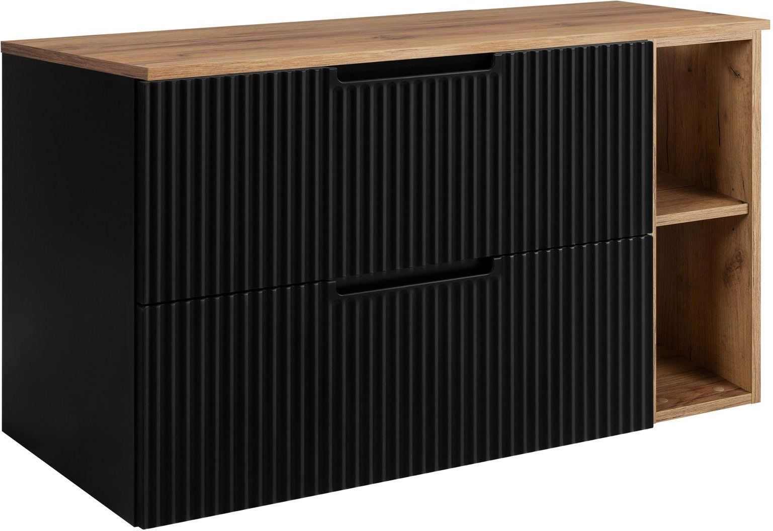 Rodan Zestaw Mebli Łazienkowych Vena Z Szafką Podumywalkową 60Cm Czarny Otwartą I Blatem 80Cm Dąb Craft Złoty Nowy Sącz