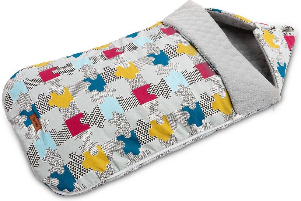 SENSILLO Śpiworek do wózka Velvet puzzle Śpiworek letni Velvet jest zaprojektowany z myślą o wygodzie podczas spacerów w pochmurną aurę. Jest to bardzo dobra alternatywa dla „niesfornych” kocyków, które lubią się zsunąć lub wypaść z wózka. Posiada otwory na 5-cio punktowe pasy bezpieczeństwa, dzięki temu nie zsunie się i zapewni odpowiednią osłonę w zależności od warunków atmosferycznych.Zaczyna padać deszcz? Śpiworek pod zewnętrzną warstwą bawełny kryje warstwę ortalionu, która chroni przed zamoknięciem. Troczki pozwolą na stworzenie kapturka i zapewnienie ciepła. Pogoda się poprawia? Śpiworek można całkowicie rozpiąć za pomocą zamka błyskawicznego, dzięki temu będzie pełnił funkcję wkładki. Odpiętą część można zwinąć i schować do torby. Zewnętrzna warstwa śpiworka to bawełna z pięknym wzorem. Pod spodem znajduje się warstwa ortalionu, której celem jest ochrona przed dostaniem się wody do środka oraz bardzo lekkie i cienkie wypełnienie z włókien poliestrowych, zapewniające odpowiednią temperaturę. Środek śpiworka to miękki i delikatny pikowany velvet.Zabezpiecza dziecko przed niesprzyjającą pogodą - 4-warstwowa budowa: wzorzysta bawełna, ortalion, silikonowa otulina, velvetWypełniony jest oddychającą, antyalergiczną włókniną z certyfikatem OEKO-TEX 100 - Można stosować w wózkach głębokich oraz spacerowych - Otwory na pasy 5-punktowe umożliwiają bezpieczne przypięcie dziecka - Wszyty zamek błyskawiczny pozwala na szybkie dopasowanie się do warunków atmosferycznych - Troczki pozwalają na stworzenie kapturka - 5 wzorów kolorystycznych do wyboru - Wymiary: 100 cm x 48 cm - Wyprodukowany w Polsce
