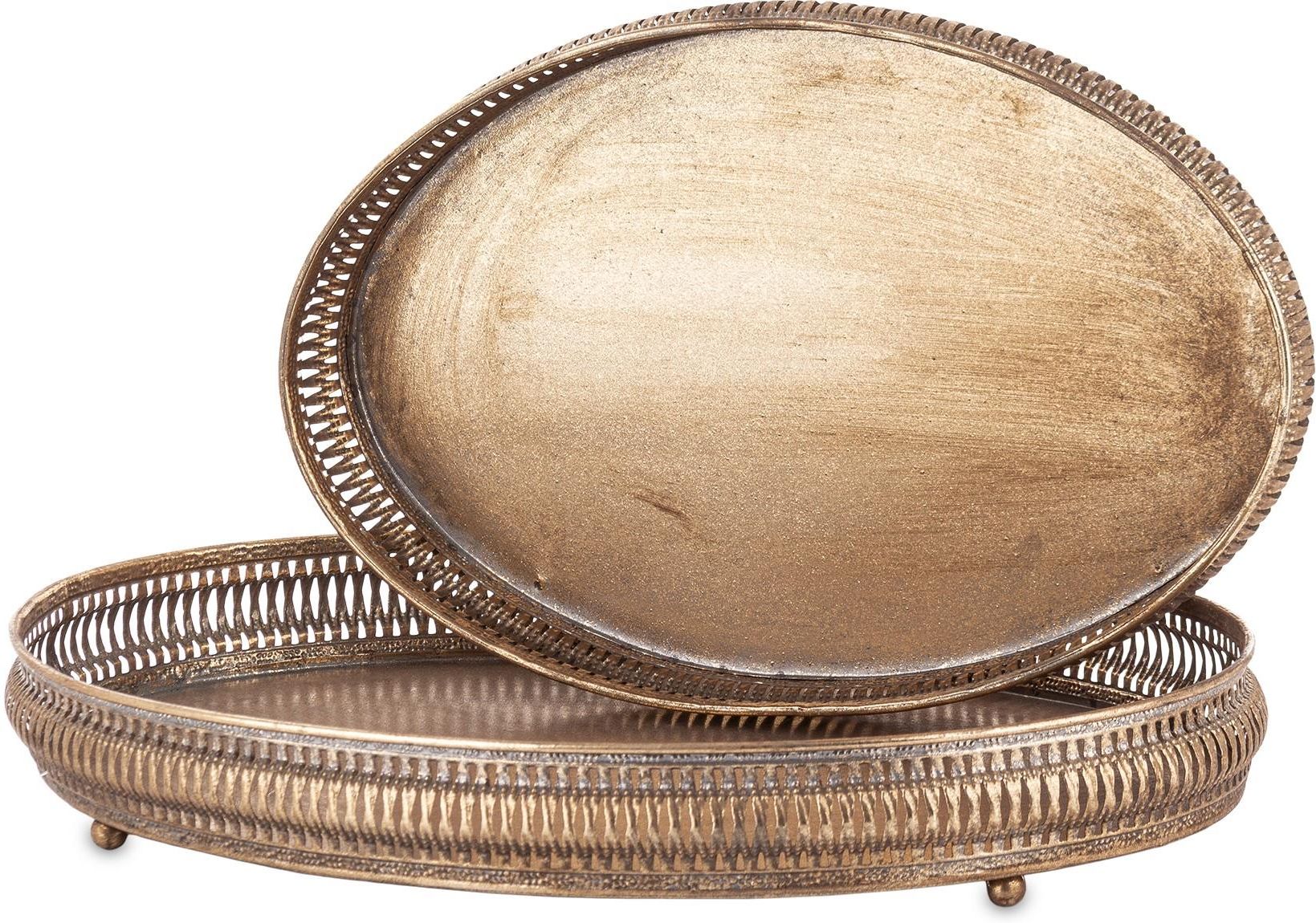 Taca Dekoracyjna Kpl. 2 Szt. Rozmiar: 5,5 x 40,5 x 28,5, 5,5 x 25,5 x23 cm Materiał: metal Kolor: antyczny złoty, przecierany Produkt: nowy, stylizowany, postarzany