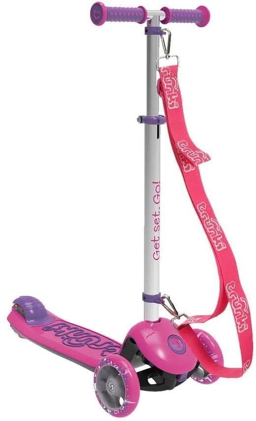 Składana hulajnoga Trunki - różowa, duża Rozpocznij przygodę z nową hulajnogą Trunki! Chcesz zapewnić swojemu dziecku wspaniałą rozrywkę i zadbać o harmonijny rozwój koordynacji ruchowej? Marka Trunki ma wspaniałą propozycję na ciekawą przygodę i zabawę na zewnątrz. Hulajnogi Trunki zostały zaprojektowane z myślą o dzieciach potrzebujących wiele ruchu i ciekawych świata. To jedyna gama hulajnóg, którą dzieci mogą jeździć, holować, składać i nosić. Obserwuj jak Twoje dziecko staje się mistrzem jazdy na hulajnodze Hulajnogi Trunki to idealny wybór dla rodziców, którzy chcą by ich dziecko od najmłodszych lat kojarzyło aktywność fizyczną z dobrą zabawą. Trójkołowe hulajnogi dostępne są w dwóch różnych kolorach i rozmiarach, mają lekką ale stabilną konstrukcję oraz duże, solidne koła, dzięki czemu dzieci mogą cieszyć się płynną jazdą, niezależnie od tego, czy jeżdżą samotnie, czy są holowane przez rodziców. Dzięki stabilnej konstrukcji, która pomaga w zapewnieniu równowagi i koordynacji, kierownicy z regulowaną wysokością i miękkimi uchwytami dostosowanymi do rączek dziecka, manewrowanie hulajnogą jest niezwykle proste i komfortowe. Sprawia również, że hulajnoga staje się idealnym środkiem do szybkiego przemieszczania, jazdy do przedszkola czy na wycieczki do parku przy jednoczesnej dobrej zabawie! Komfort i bezpieczeństwo Wszystkie hulajnogi Trunki wyposażone są w wyjątkowo szerokie koła i hamulce, zapewniające cichą i płynną jazdę oraz szybkie i ostre hamowanie w przypadku awaryjnego zatrzymania. Transport i podróżowanie są również łatwe dzięki bezpiecznemu i intuicyjnemu mechanizmowi składania oraz paskowi do noszenia. Jeśli więc dziecko nie ma ochoty wracać do domu na hulajnodze możesz zgrabnie zmieścić hulajnogę w bagażniku samochodu złożyć ją do niewielkich rozmiarów i przekształcić w torbę z paskiem do noszenia lub idealną do zawieszenia z tyłu wózka. Cechy produktu: Idealna na wyjścia do sklepu, parku, przedszkola Wyposażona w hamulec Rodzaj uchwytu - antypoślizgowy Lekka i solidna konstrukcja Łatwa w przechowywaniu - możliwość złożenia Wyposażona w łatwy do zamontowania pasek holowniczy Możliwość noszenia - pasek holowniczy pełni również funkcję paska do noszenia W zestawie torba do spakowania hulajnogi Waga produktu - 3,5 kg w tym pasek Maksymalna szerokość produktu - 28 cm Minimalna / maksymalna wysokość uchwytu - 77-91 cm Limit wagi - 75 kg Szerokość podestu - 14 cm Wymiary - 62 x 28 x 17 cm Zalecany wiek - 3+