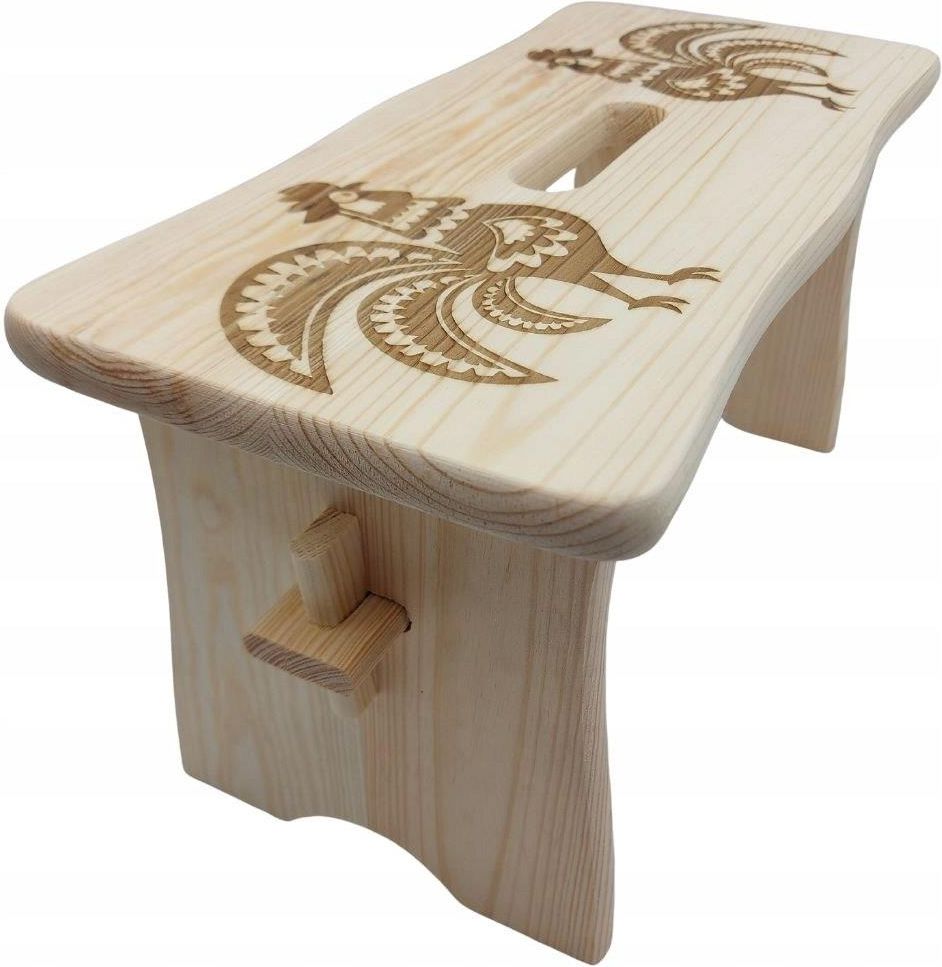 Taboret Małe Niskie Krzesełko Drewniane Ryczka Stołek drewniany wykonany z nielakierowanego drewna sosnowego. Na nim wygrawerowany dekor - piękne ludowe koguty. Idealny do kuchni, karczmy, góralskiej chaty. Stołek drewniany, ryczka, taboret. wykonany z drewna sosnowego ekologiczny, nielakierowany, …