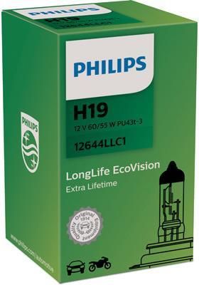 Parametry: Rodzaj lampy: H19 Napięcie: 12 V Moc znamionowa: 60/55 W Rodzaj gniazda: PU43t-3