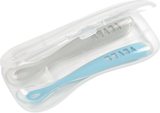 Beaba Zestaw 2 Łyżeczek Silikonowych w Podróżnym Etui 4 m+ Windy Blue Nowy Staw