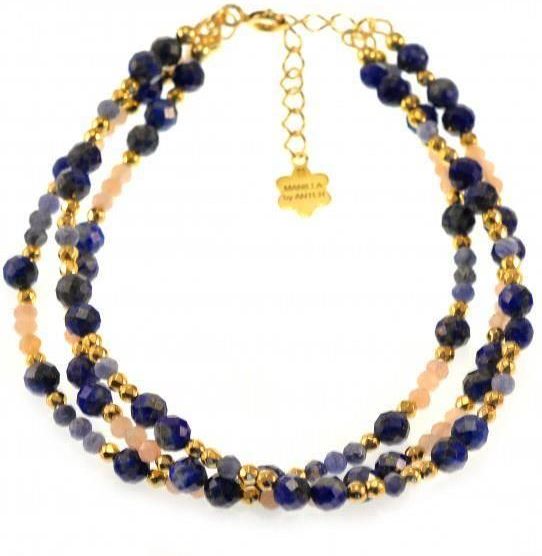 Bransoletka Lapis Kamień Słoneczny 925 Bransoletka wykonana ze srebra próby 925 , pozłacanego 24 karatowym złotem Kamień: Lpis, Kamień słoneczny + Hematyt Rozmiar kamienia: 2 mm/3mm/4mm Długość :17,5 cm + przedłużka do 19,5 cm Kobieta bez biżuterii jest jak nocne niebo bez gwiazd. Piękna, ale czegoś jej brakuje. Czegoś niedużego, co przykuje uwagę, podkreśli styl, przyciągnie wzrok, nie pozwoli oderwać oczu. Dobrze dobrana biżuteria jest niczym ostatnie muśnięcie pędzla na obrazie Van Gogha. To dzięki niej wyglądasz i czujesz się doskonale. Zapraszamy do naszego świata, w którym spełniamy Twoje marzenia! Biżuteria pakowana jest w firmowe opakowanie + dołączony jest certyfikat potwierdzający użyte materiały i kamienie. Materiały na których pracujemy Biżuteria Manilla powstaje w najwyższej jakości, specjalnie wyselekcjonowanych minerałów takich jak: szmaragd, rubin, turmalin, malachit czy lapis. Dzięki użyciu naturalnego kamienia każda sztuka biżuterii wygląda niepowtarzalnie. W naszej biżuterii wykorzystujemy elementy srebrne próby 925, rodowane oraz pozłacane 18 karatowym różowym i 24 kratowym żółtym złotem. Złocenia są wykonywane specjalną 2-krotną metodą, a warstwa złocenia to aż 0,5 μm.