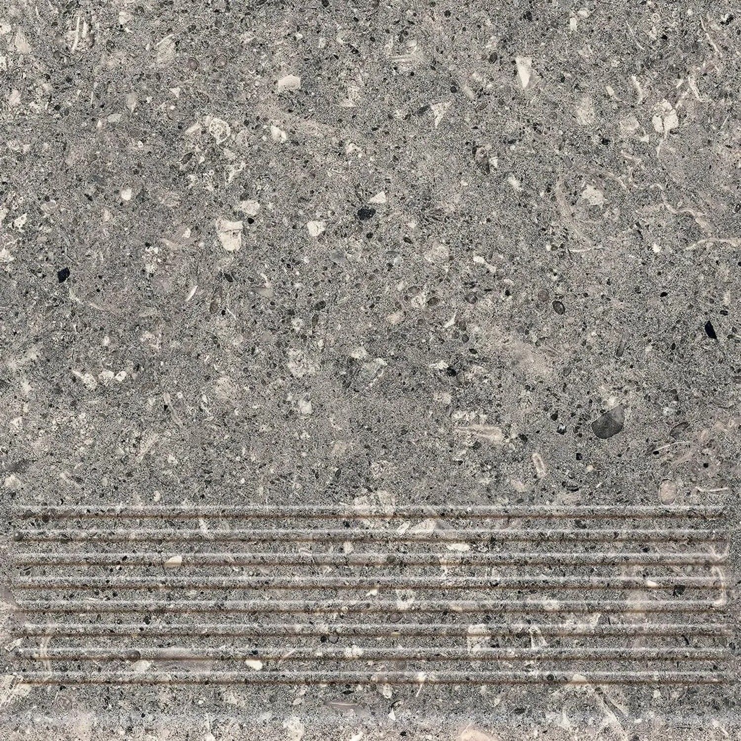 Stopnica ROCKSTAR grafit 30 cm x 30 cm Płytka przeznaczona do wykończenia schodów i podestów. Posiada właściwości mrozoodporne i jest wytrzymała na warunki atmosferyczne. Sprzedawana na sztuki.