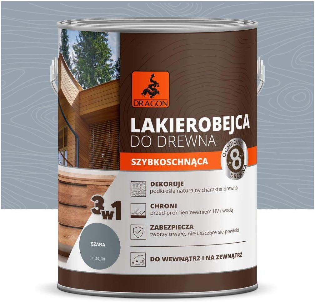 Lakierobejca 3w1 do drewna Dragon 2,5L SZARY Lakierobejca 3w1 do drewna Dragon 2,5L SZARY Szybkoschnaca Lakierobejca Dragon to wysokiej jakości produkt ochronno – dekoracyjny do zabezpieczenia drewna zarówno wewnątrz pomieszczeń jak i na zewnatrz. Dzięki zaawansowanej formule 3 w 1 idealnie …