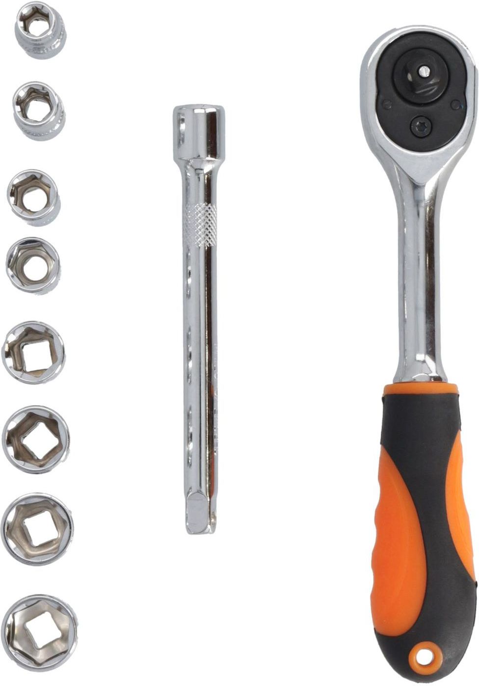 Zestaw kluczy nasadowych składający się z 10 części Wszystkie elementy wykonane są z wysokogatunkowej jakości stali chromowo-wanadowej, co gwarantuje wytrzymałość narzędzi Bardzo praktyczny zestaw, który zajmuje niewiele miejsca W zestawie znajdują się: Grzechotka 1/4" 45 zębów Przedłużka 1/4" 100 mm Nasadki w rozmiarach: 6 - 7 - 8 - 9 - 10 - 11 - 12 - 13 mm