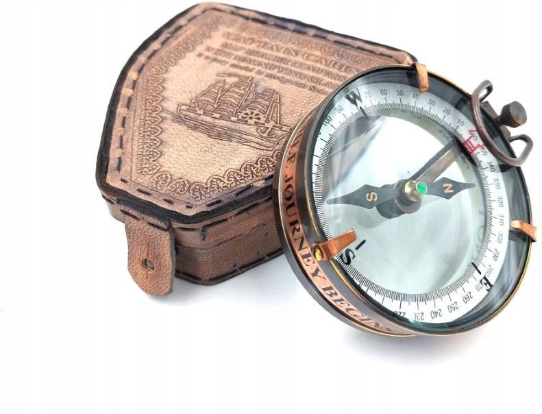 Kompas magnetyczny map reader w skórzanym etui Kompas magnetyczny to niezwykle przydatny gadżet dla podróżnika. Dzięki kompasowi określisz kierunki świata, wyznaczysz azymut i odnajdziesz się w terenie. Obudowa kompasu wykonana z mosiądzu. Szklana tarcza kompasu pozwala na łatwiejsze czytanie mapy. Kompas posiada mocowanie, do którego można doczepić łańcuszek lub sznurek. W zestawie skórzane etui, które ochroni kompas przed zarysowaniami. Informacje o produkcie Kompas Materiał: mosiądz, szkło Kolor obudowy: mosiężny Napis na rancie: „A thousand mile journey begins with a single step” - Podróż tysiąca mila zaczyna się od pierwszego kroku Wymiary: 9,25 x 7,75 x 3,25 cm Etui Materiał: skóra Napis na topie: Captain cabin Wymiary: 11 x 10x 3,5 cm Idealny jako Prezent dla podróżnika Praktyczny gadżet terenowy dla survivalowca Narzędzie do nauki czytania mapy i orientacji w terenie Dekoracja vintage Dlaczego warto? Funkcjonalny kompas z magnetyczną igłą i szklaną tarczą Mosiężna obudowa – trwałość i styl retro Inspirujący napis: „A thousand mile journey begins with a single step” Skórzane etui z napisem „Captain Cabin” – chroni i nadaje charakter Możliwość mocowania – przypnij łańcuszek lub linkę
